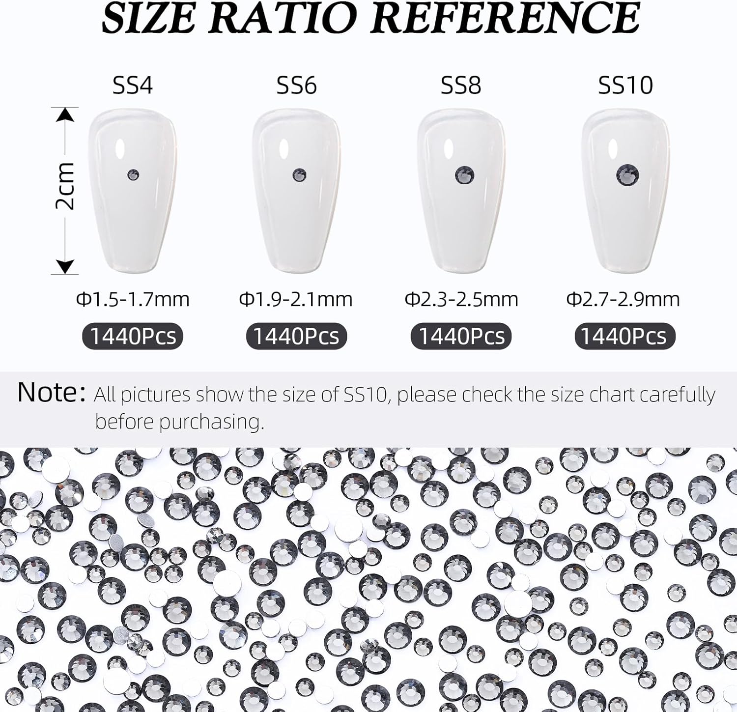 Gray Flatback Rhinestones, Glass Rhinestones for Nail Art and Craft, Glue Fix, Loose Crystal Gemstones(Gray, SS4, 1440pcs, 1.5-1.7mm)