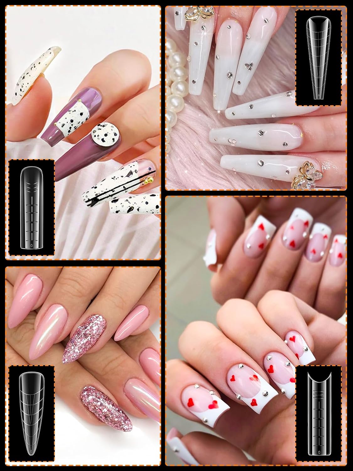 - 【Sturdy Gel Nail Mold】Reusable nail forms are made with high quality material, which is strong, tough, and reusable, providing you with a wonderful nail art experience that lasts.This artificial nails forms protective sleeve has a small handle on both sides, which is convenient for constructing gel nail extension nails, and will not stick to your hands, and can be easily removed after application