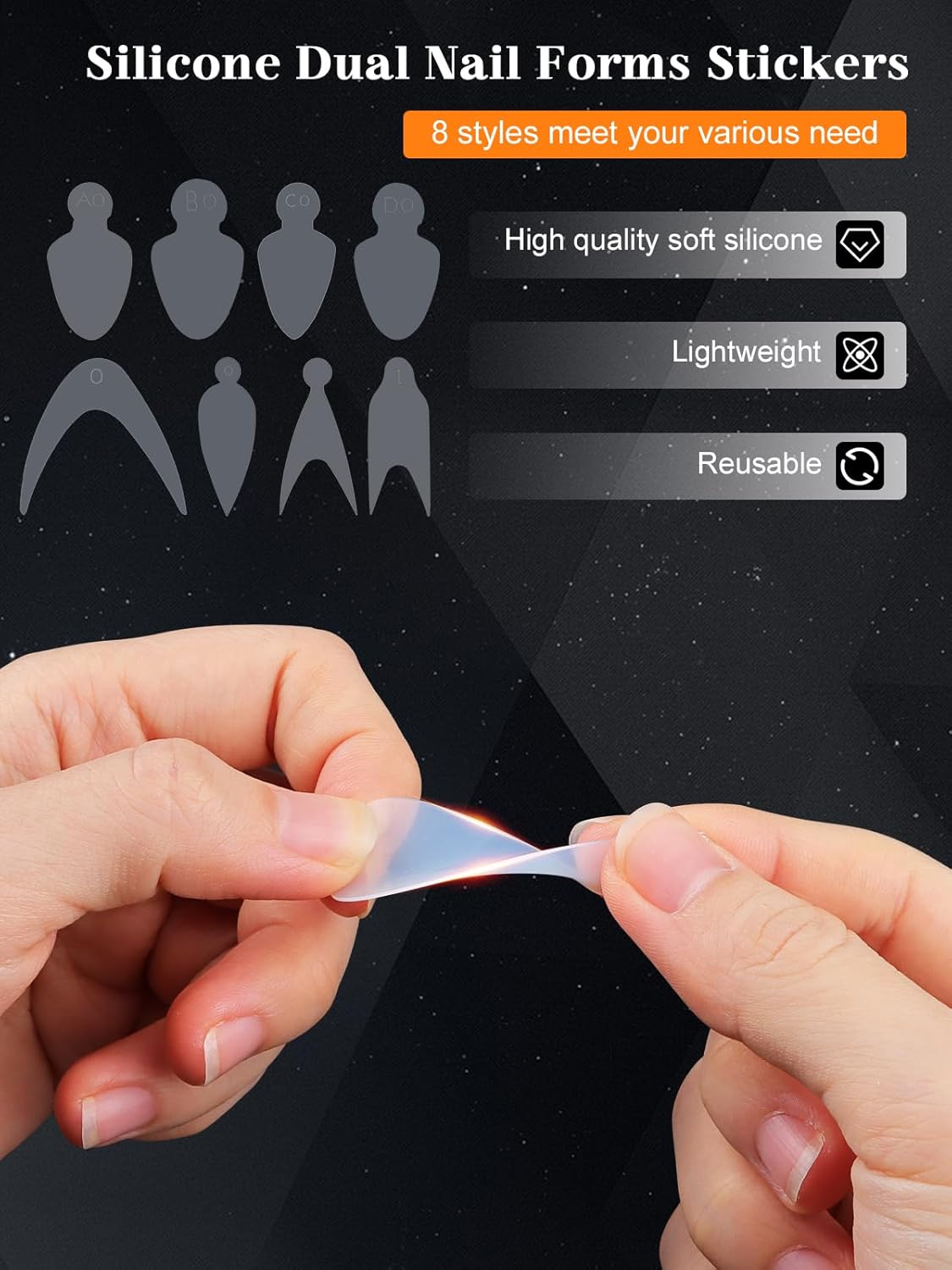 - 【8 Shapes with 12 Sizes】Both dual nail extension molds tips and French dual sticker silicone pads come in 8 style shapes and 12 sizes, each is engraved with numbers "0-11" for easy to recognize,which is convenient for you to design the nail length you want. And each size of long nail tips is separated by a small grid, a total of 12 grids, so they're easy and convenient to choose the suitable size to meet your nail's need