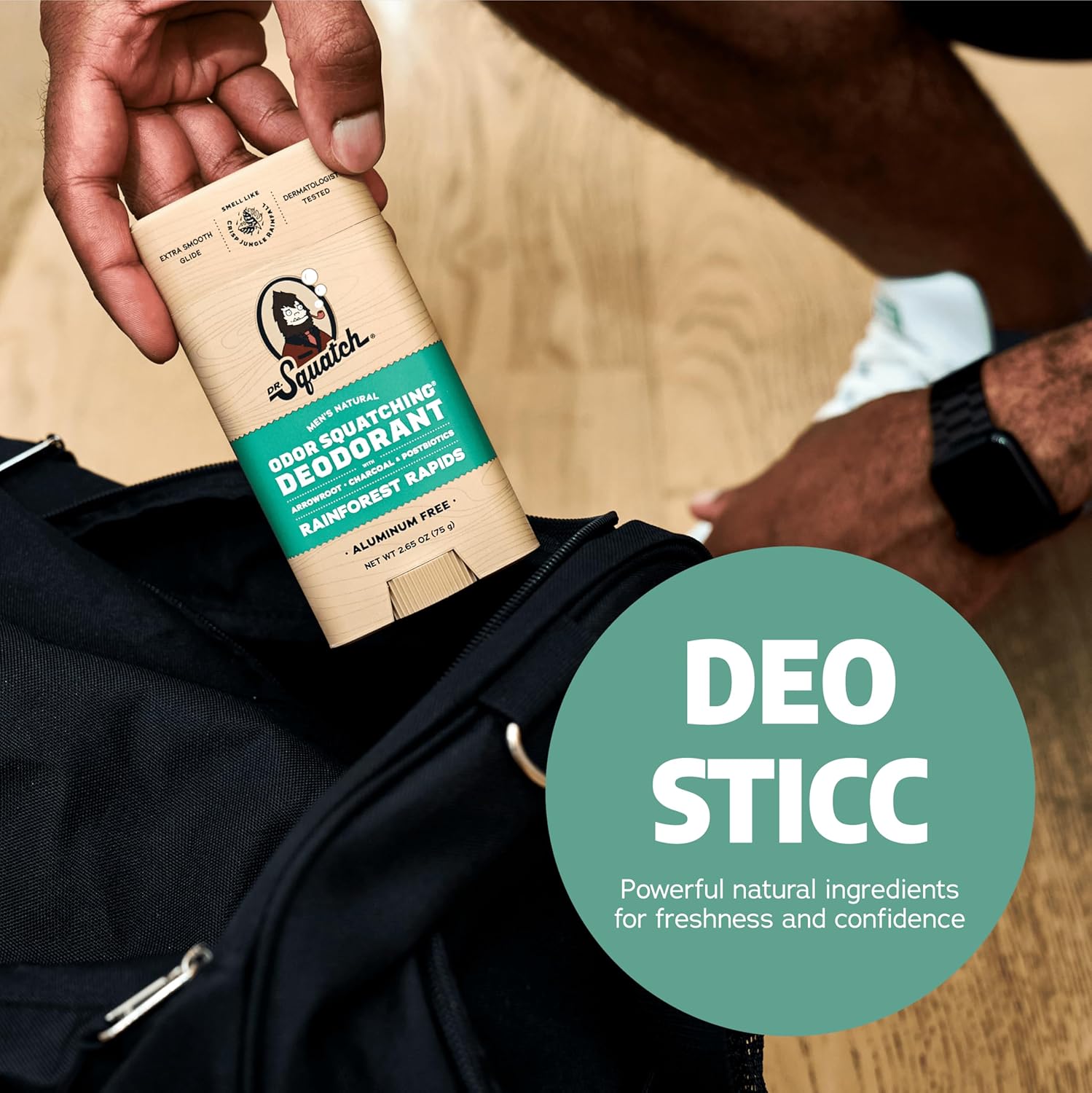Dr. Squatch Natural Deodorant for Men - Odor-Squatching Aluminum Free - Rainforest Rapids (2.65 oz, 3-Pack)