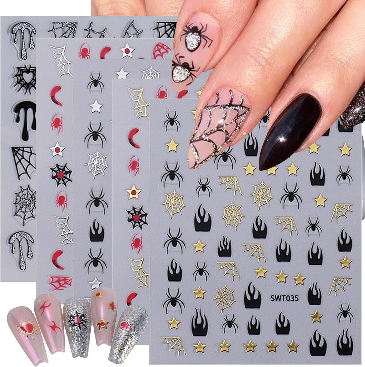 - Easy to Use:Just use tweezers to peel off nail Self Adhesive stickers and stick spider nail decals on your nails. You can also use top coat to cover to make the beautiful stickers last longer.