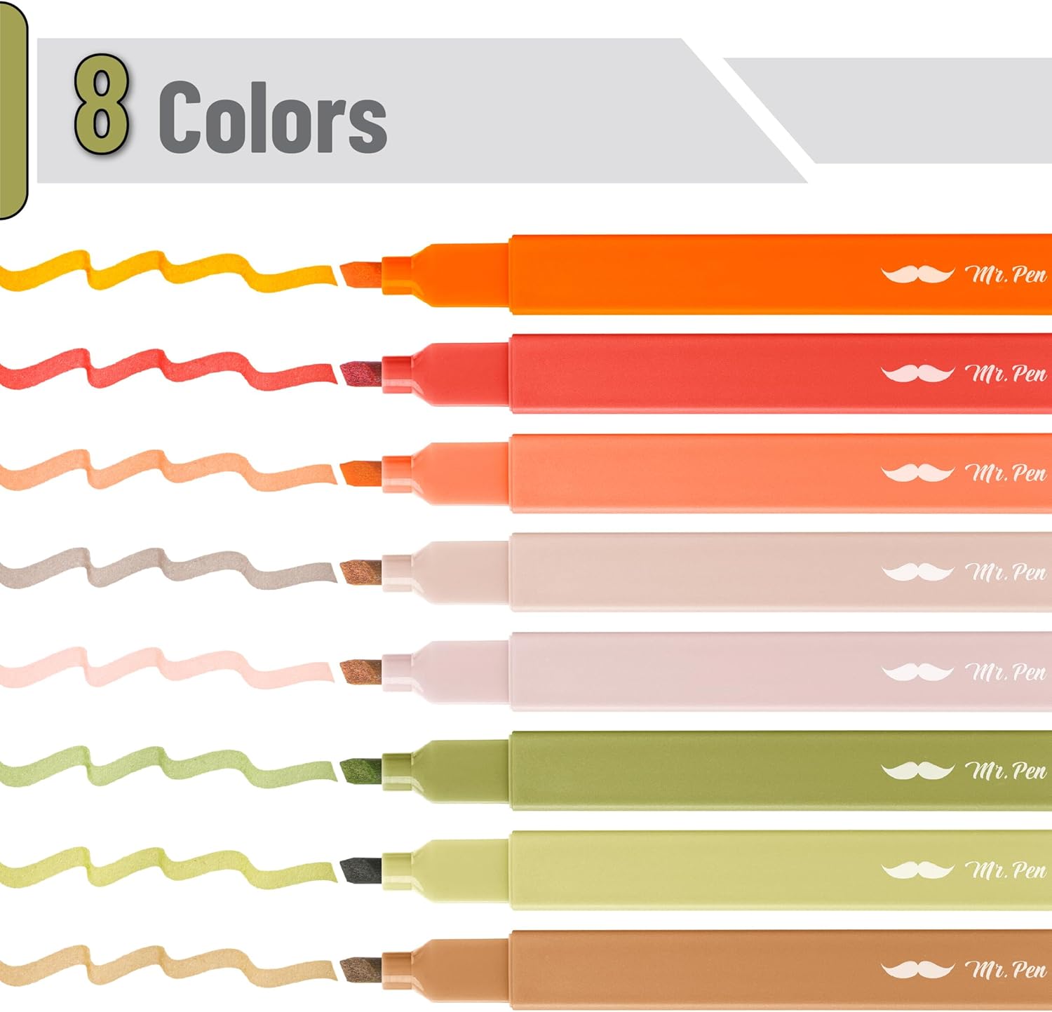 Mr. Pen- Aesthetic Highlighters, 8 Pack, Chisel Tip, Autumn Earth, Cute Highlighters Assorted Colors, Back to School Supplies