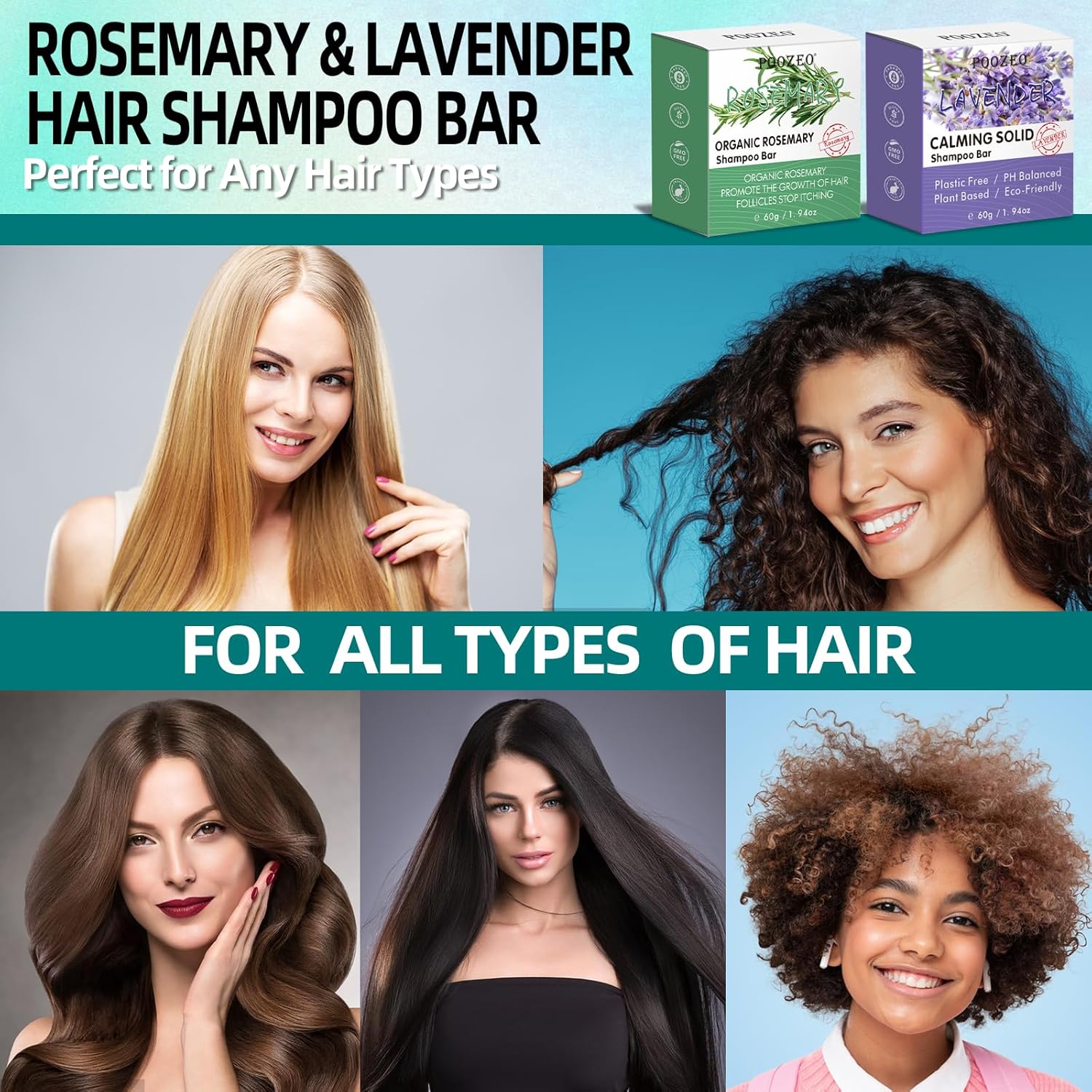 2 Pack Rosemary Lavender Hair Shampoo Bar,Deep Cleansing for Scalp Hair Loss Shampoo Soap,Organic Shampoo Oil Control for Hair Growth,Refreshing and Hydrating Bar,Gifts for Women Men
