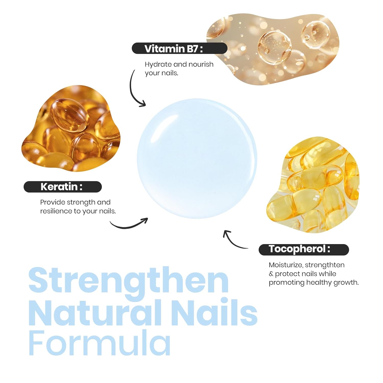 - 【Fast Drying, No UV Needed】: Say goodbye to UV lamps and long waits. Our quick-dry formula natural nail strengthener polish sets in 1–2 minutes—just apply and go. Ideal for fast touch-ups, travel, or last-minute events. Use with base and top coat (sold separately) for best results.