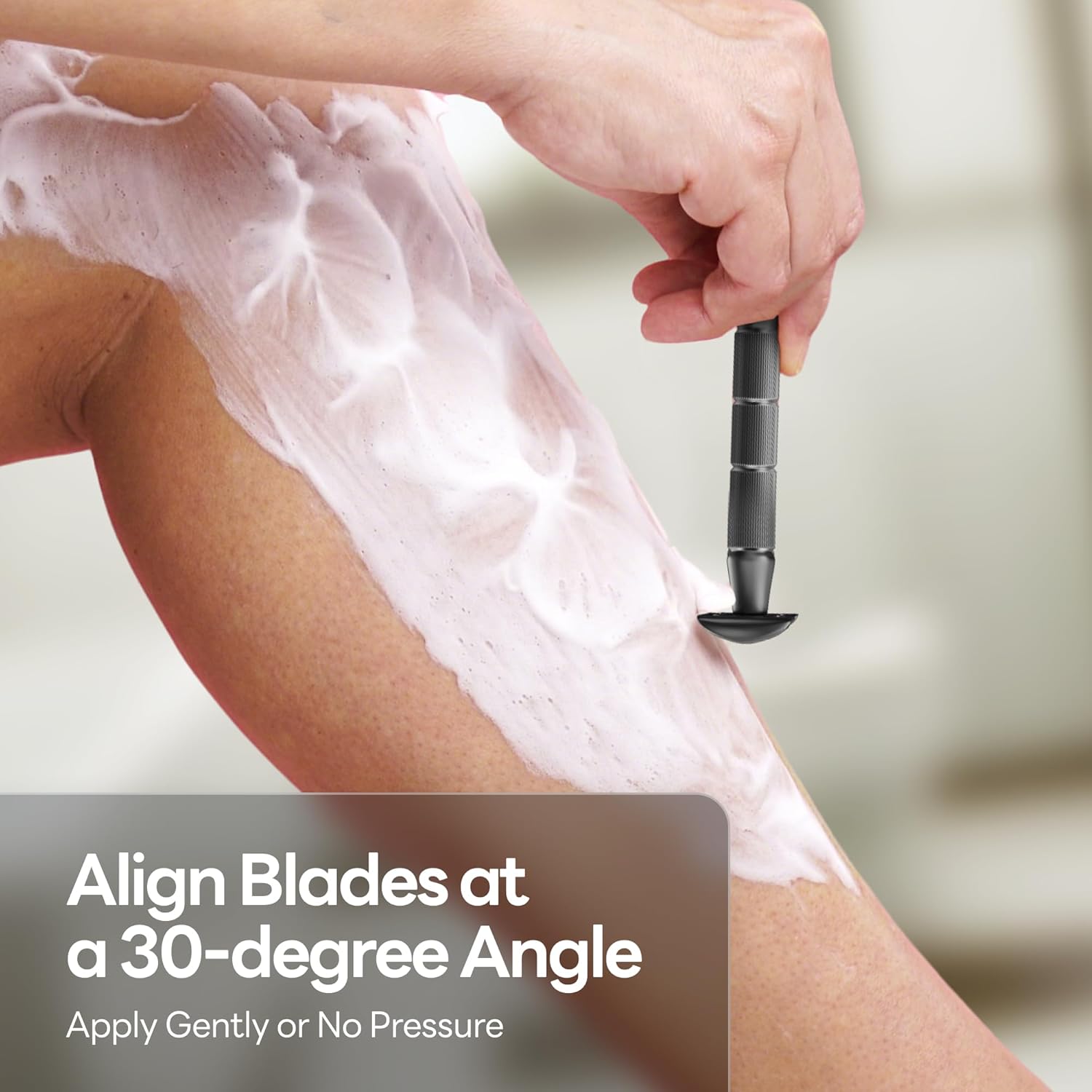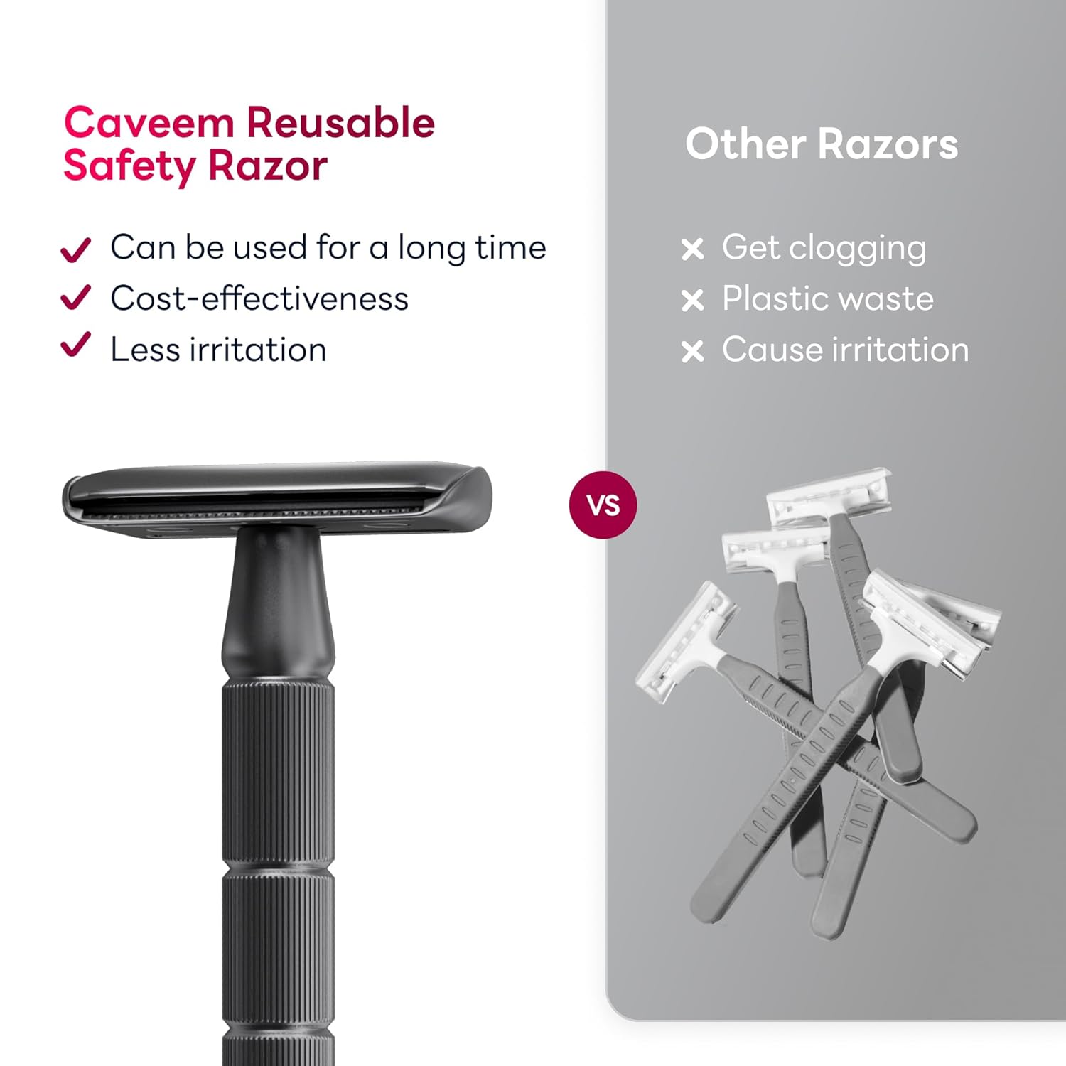 - DESIGN FOR BEGINNER :CAVEEM's reusable metal razor offers effortless, precise shaving with light glides. Its innovative handle design is non-slip crafted for comfortable grips, allowing smoother shaving at a 30-degree angle