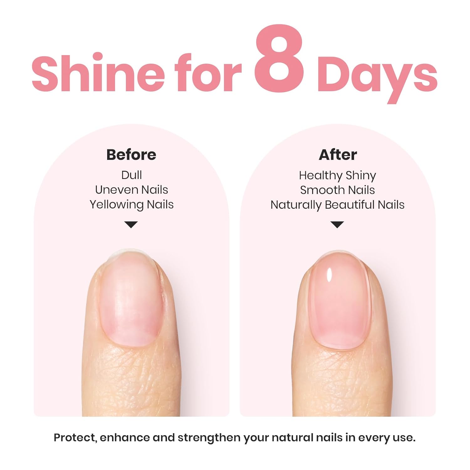 - Upgraded Nail Concealer and Strengthener 2 in 1: This nail base liquid features a transparent pink color that looks like natural nails . After application, the surface of the nails appears plump and shiny, effectively covering problems such as yellowing, damage, cracks and roughness, making the nails look healthier and more elegant. Suitable for slightly or moderately damaged nails.