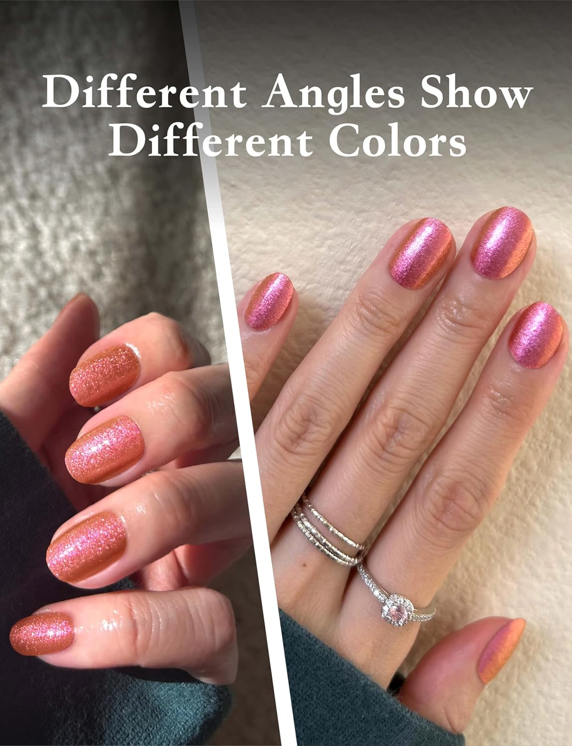 - [DESIGN]: Experience the magic of gradient glitter with our nail stickers, which shift colors from different angles. The dynamic gradient effect creates a mesmerizing sparkle that transforms with every movement, providing a unique and captivating look that stands out from every perspective