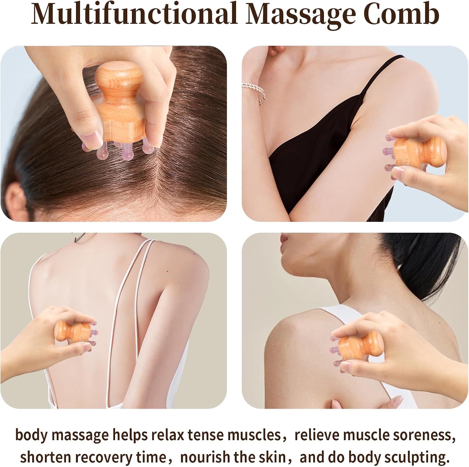- Material--Real Jade: The comb combines jade and wood, the jade massage head and the wooden handle. Compared to other wooden massage products, it has a delicate texture, is more comfortable, cool and translucent, and is easier for the skin to accept. And our product use wooden integrated design, it will have stable handle and stable jade massage head , so, it is easy to hold and all parts won't be easily broken when you use it . Tips: Real jade, don't drop it, it might break.