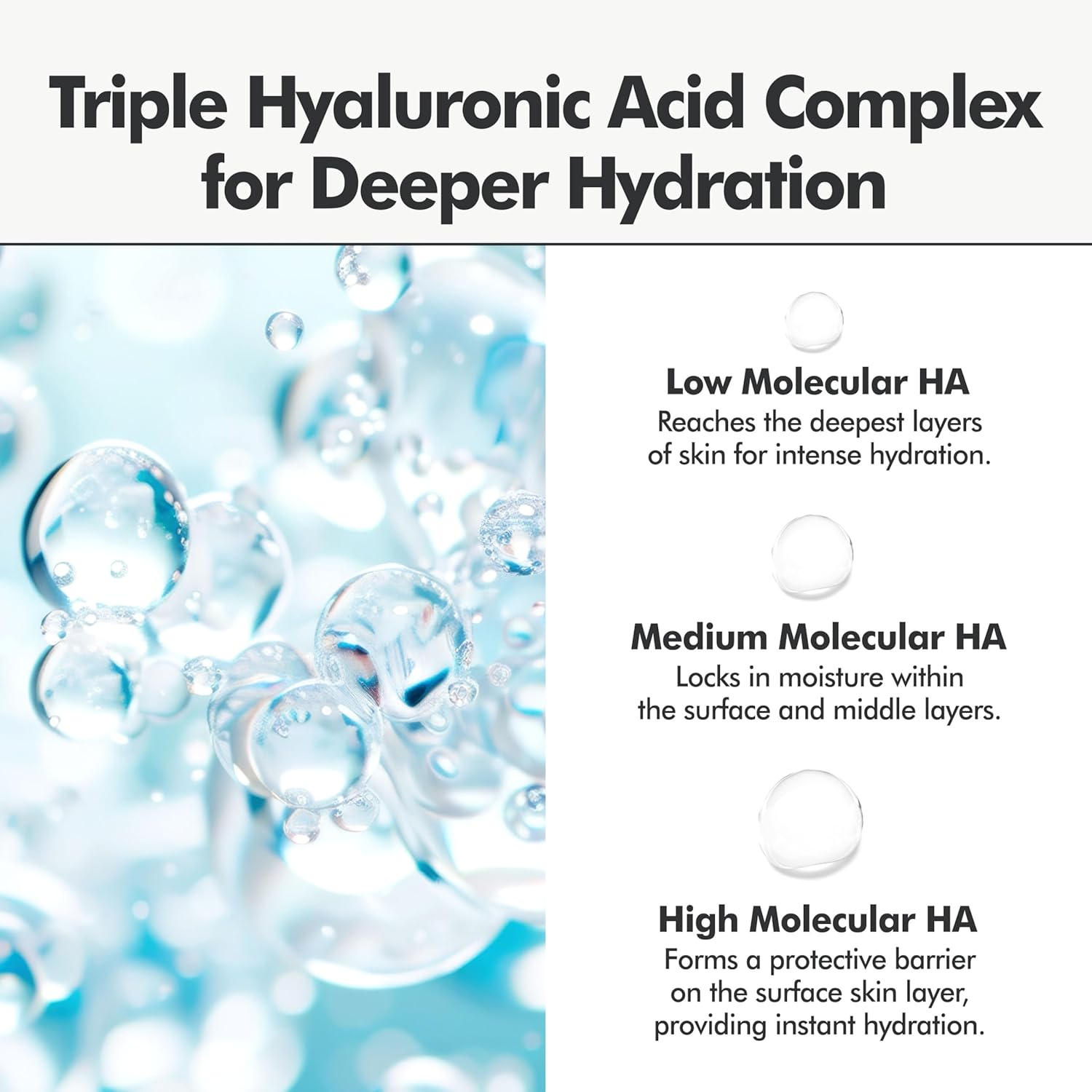- Hyaluronic Acid Serum for Deep, Lightweight Hydration: Formulated with low to high molecular hyaluronic acids, this serum delivers multi-layered hydration without stickiness. It plumps and smooths the skin, leaving it soft, fresh, and well-hydrated throughout the day.