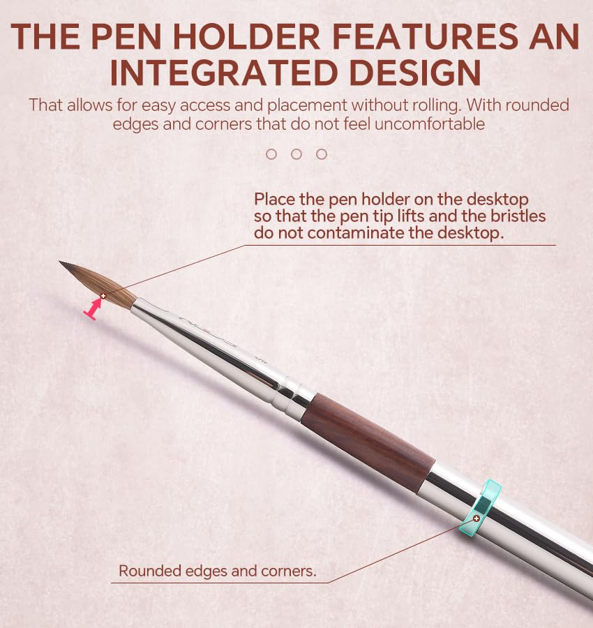 • The patented pen holder design comes with a built-in pen holder, ensuring that the pen does not roll off when placed, and the brush head does not touch the desktop, keeping the bristles and nail art desktop clean.