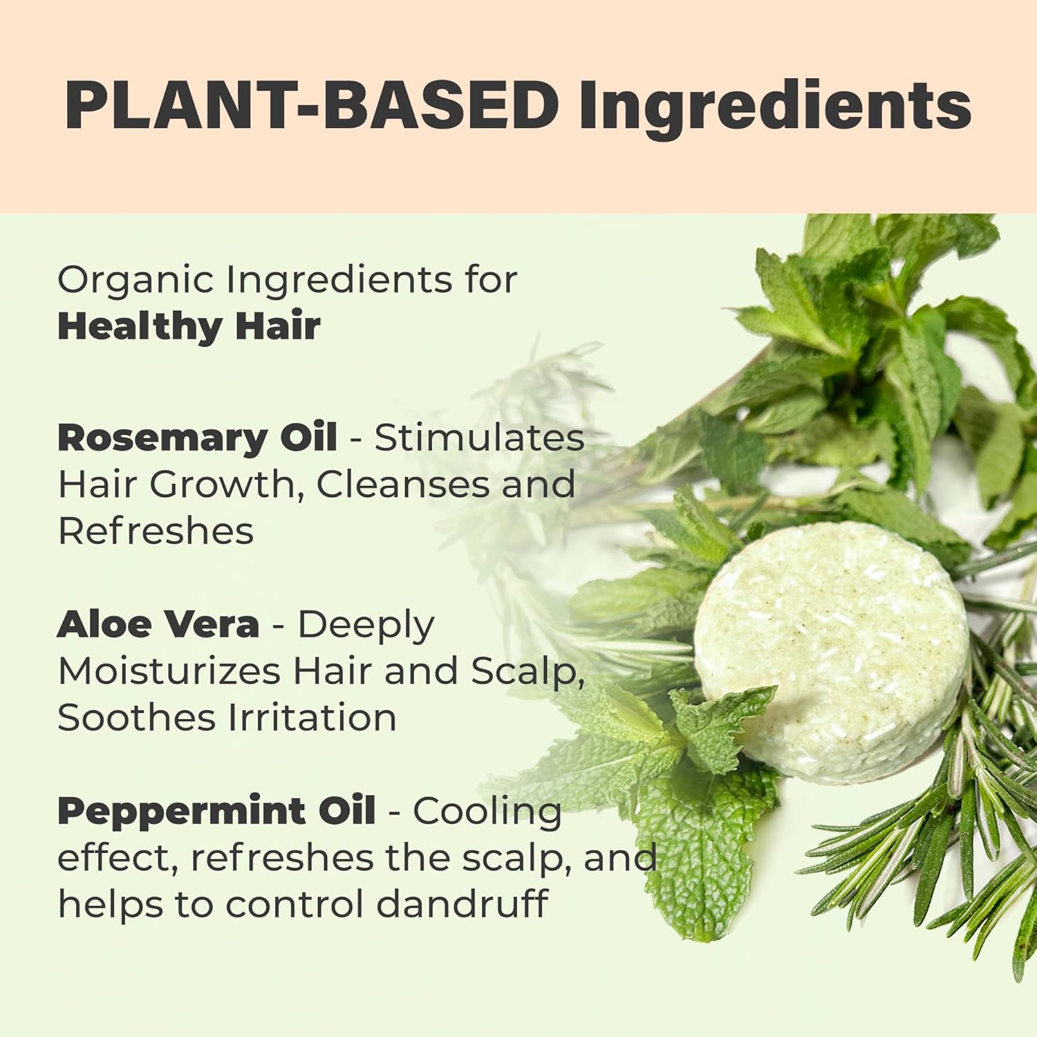 Organic Rosemary and Aloe Vera Solid SHAMPOO BAR AND CONDITIONER BAR for Hair Growth, Refreshing and Hydrating | Herbal Shampoo with Rosemary, Peppermint, Castor Oil, Argan Oil, and Betaine | USA
