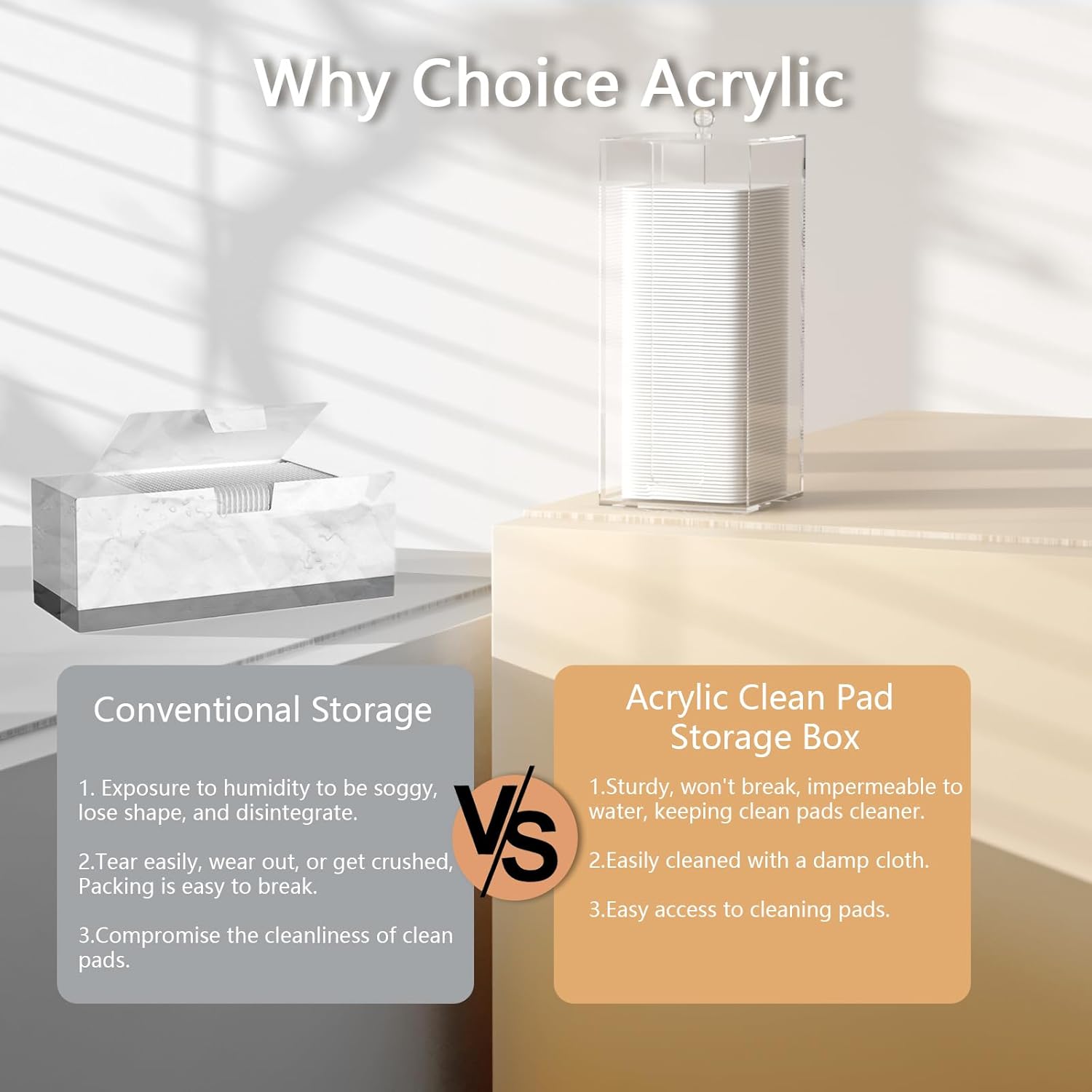 - 【Easy to use】: This clean pad storage box, made from break-resistant acrylic, is perfect for Clean Skin Club Clean Pads. Its sleek design fits any counter, keeping your cotton rounds dispenser accessible. Its lid design allows for easy access.