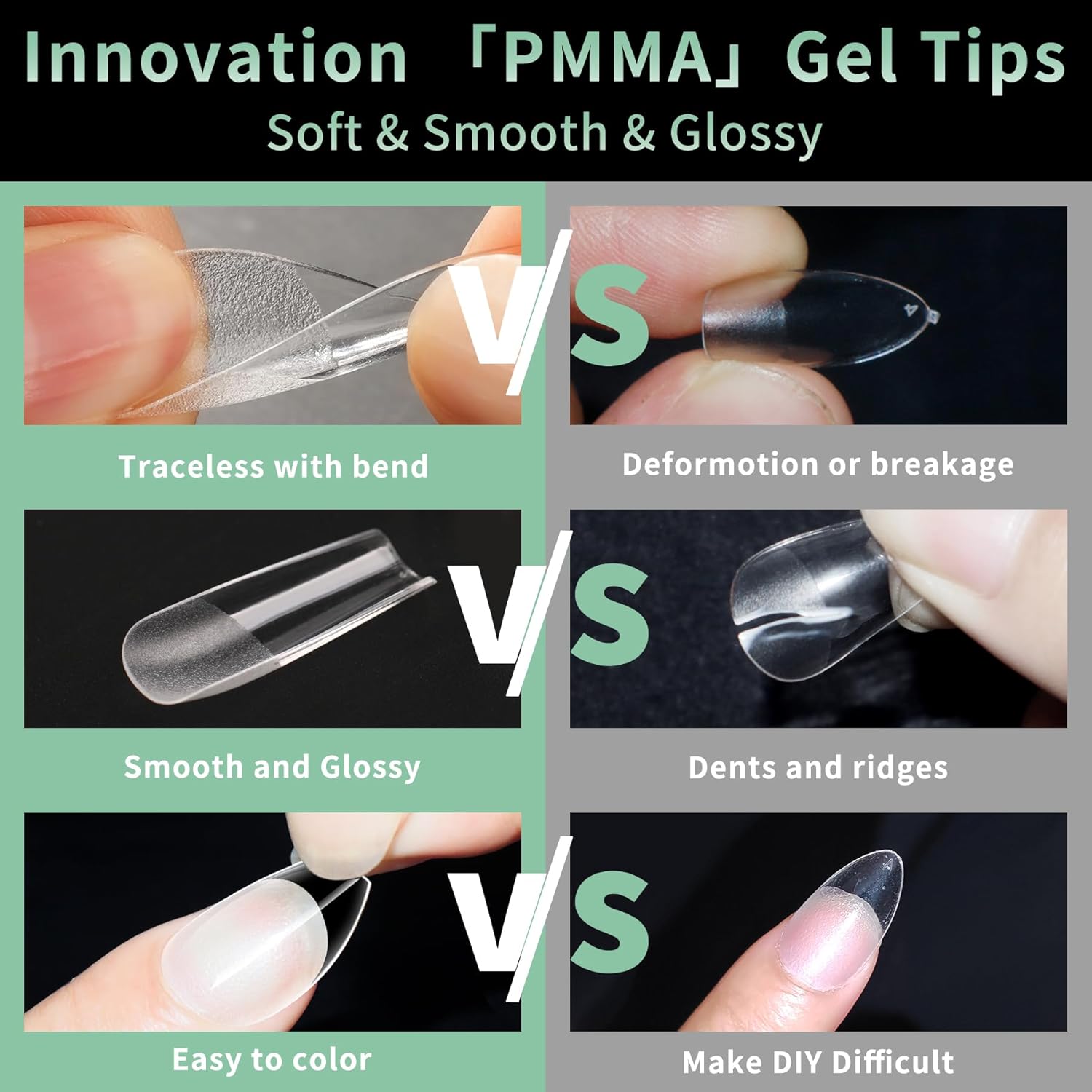 • No Trace Gel Nail Tips Soft: Crafted from gelly soft material gel, these fake nails leave no trace even when bent. Their bright clarity allows for easy pressing, trimming, and painting, helping you create your ideal nail shape effortlessly. Perfect for a true DIY manicure.
