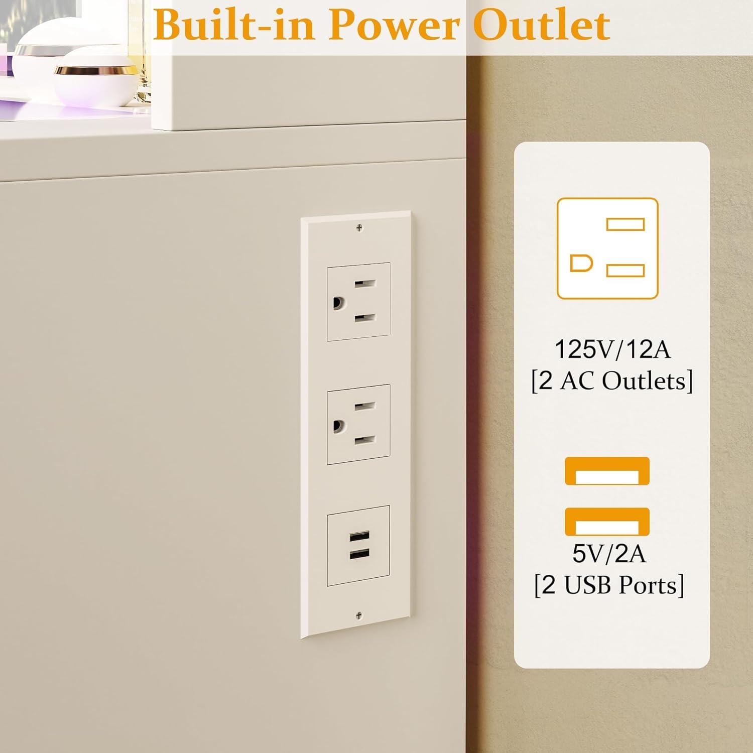 - Power Outlet & Easy Assembly:The white vanity desk with a power outlet, which provide power for your hair dryer, curling iron, and other electronic devices at the same time. Bringing more convenience to your daily life. The white makeup vanity comes with tools and numbered accessories, very easy to assemble following the step-by-step instructions