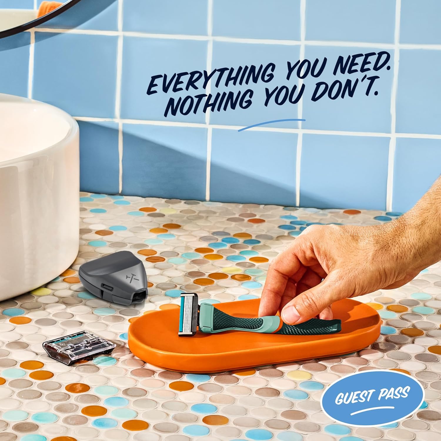 Dollar Shave Club | The Guest Pass Shave Set | 2 Extra Close Refill Cartridges, 1 Handle (Green), 1 Razor Cover, Razors for Men