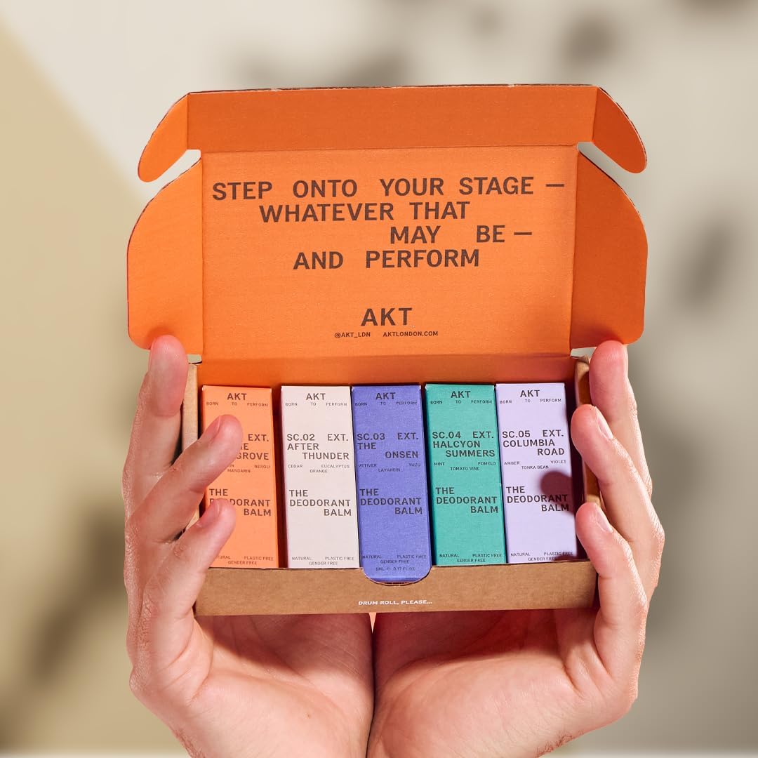 - Born to Perform, Now Yours to Discover: Created by West End performers to withstand the hottest lights and busiest schedules, AKT is built to perform under pressure. The Discovery Set lets you experience our powerful, natural deodorant balm โ protecting against odor and perspiration all day, every day.