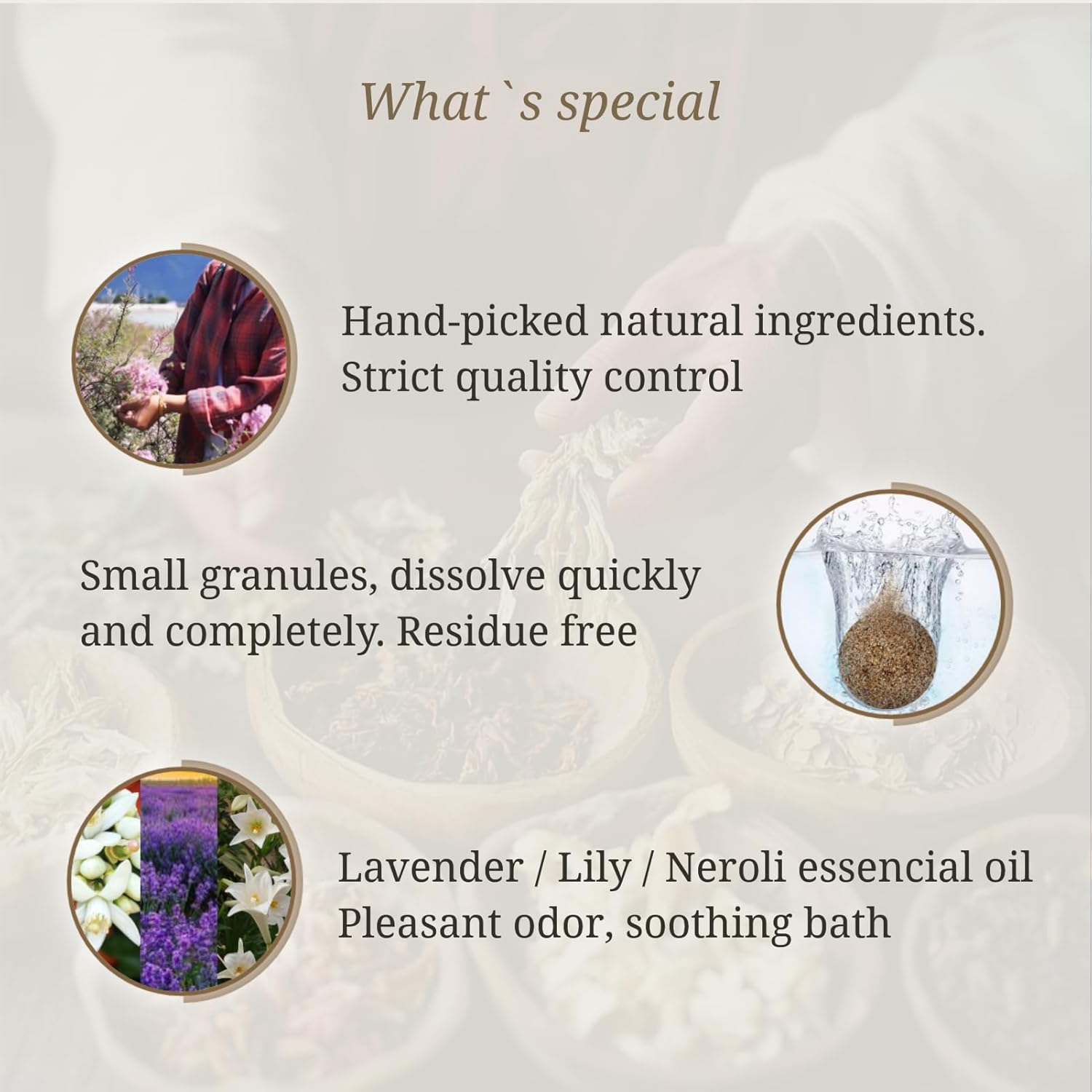 - Scent : Lavender, Lily, Neroli