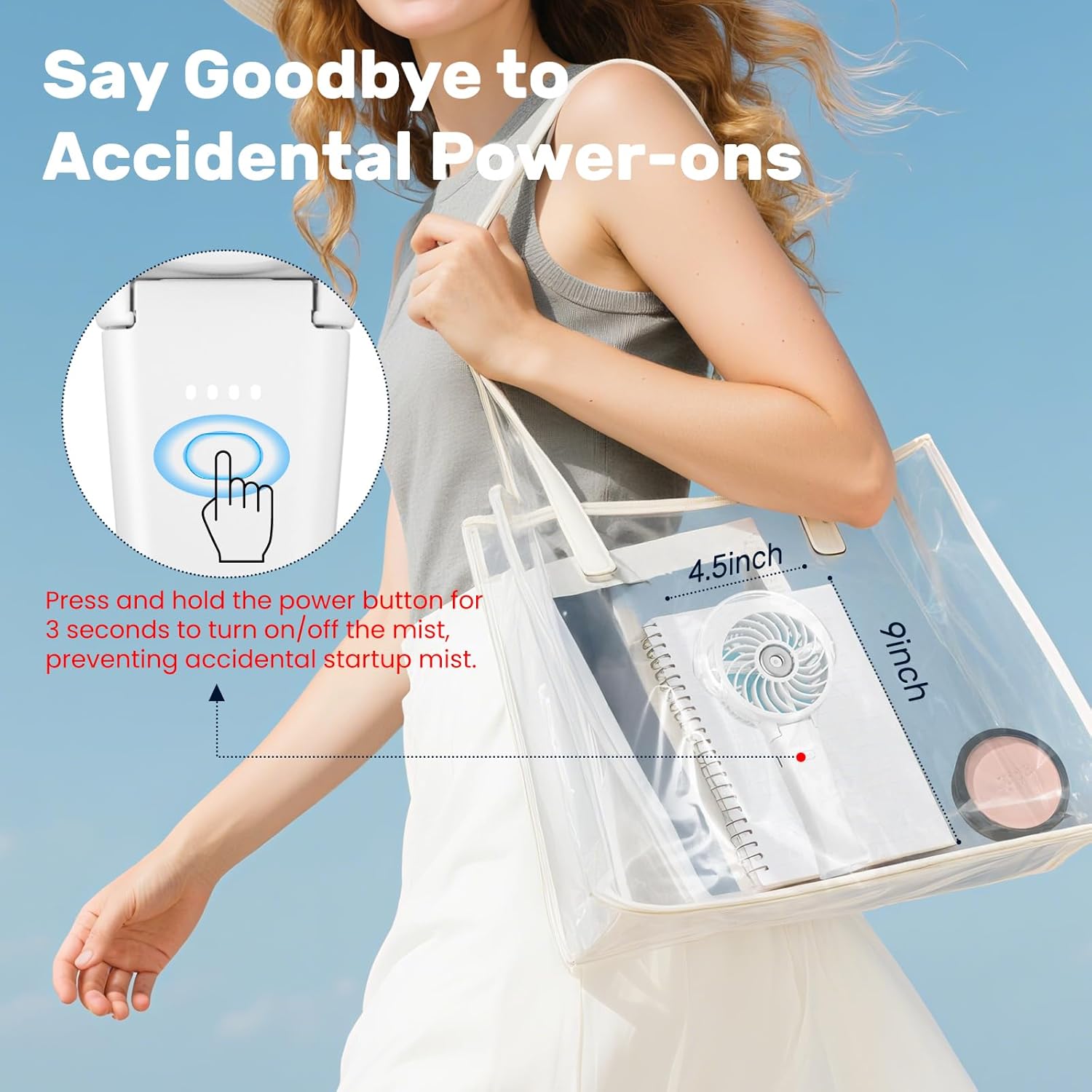 HandFan 4000mAh Portable Misting Fan, 50ml Water Tank, Rechargeable Handheld Personal Mister Fan, Spray Water Mist, Foldable Electric Hand Fans for Beach, Travel, Outdoors(White)