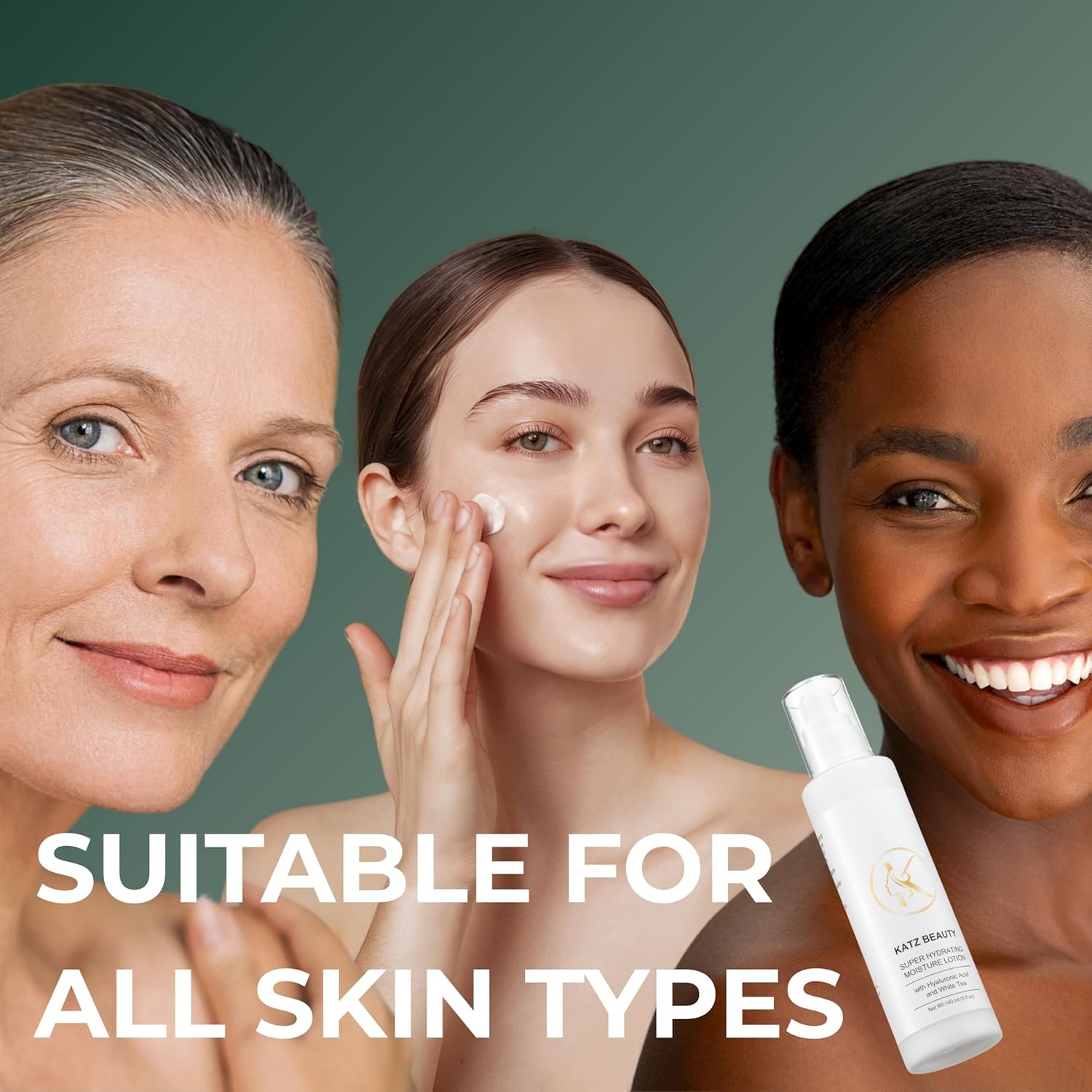 Katz Beauty Super Hydrating Moisture Lotion - Hyaluronic Acid & White Tea for Dry, Oily, Sensitive Skin, Non-Comedogenic Face Moisturizer, 5 fl oz