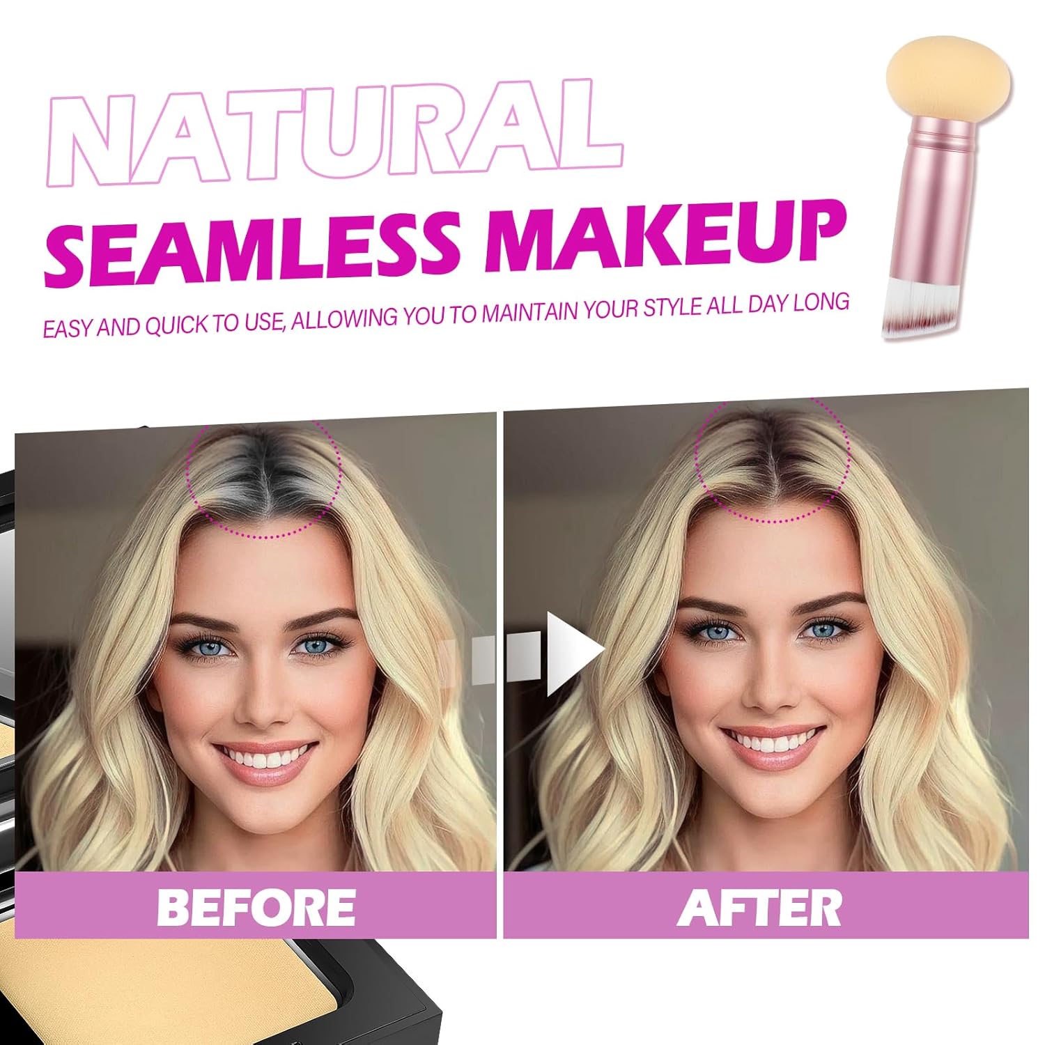 - COMPACT ROOT TOUCH UP HAIR COLOR: Unique travel kit design, hairline shadow powder come with mirror, hairline powder, powder puff and rose pink dual-ended hair makeup brush applicator with sponge tip, convenient to carry on daily or traveling. You can cover hair root instantly, define your hairline and make up at anytime, anywhere