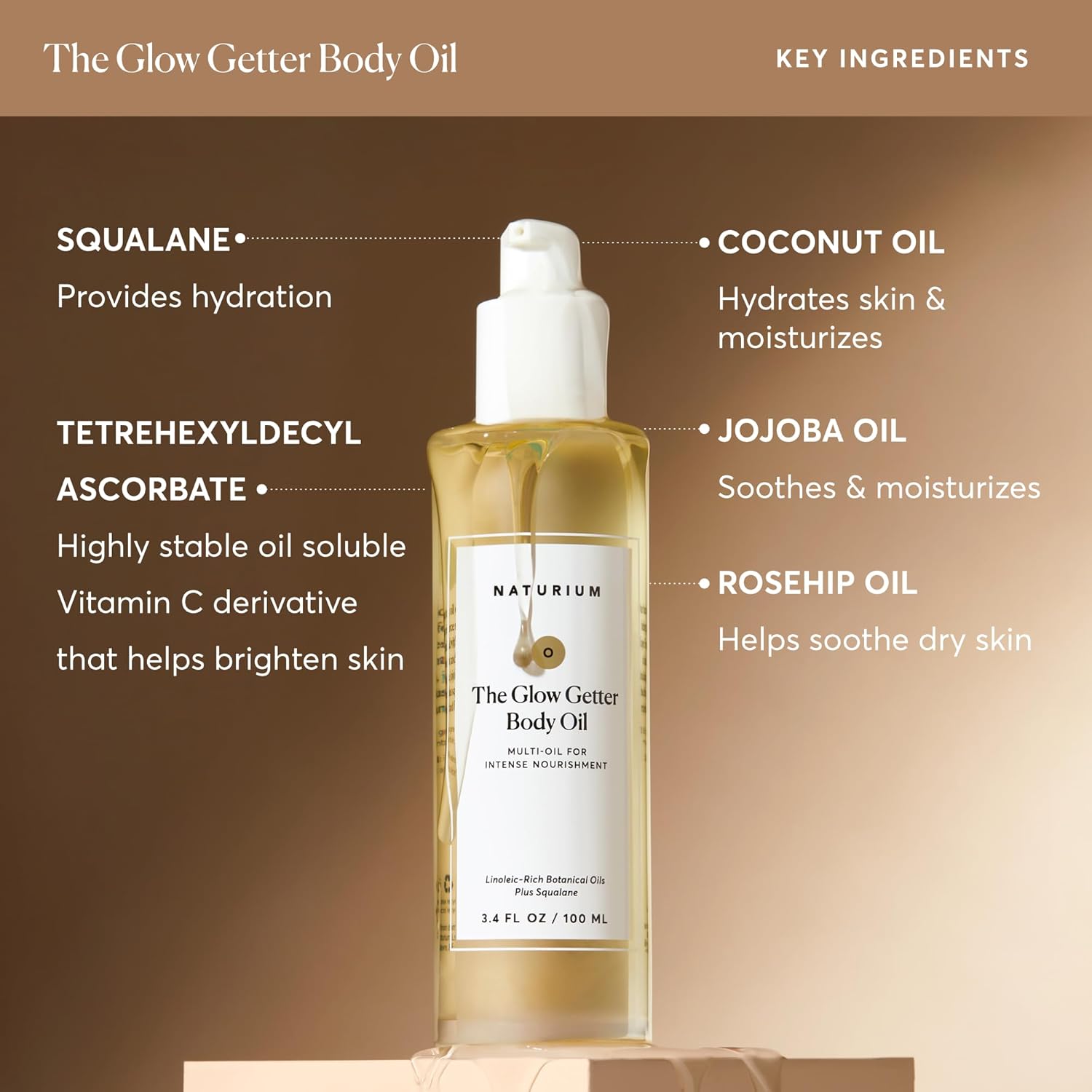 Naturium The Glow Getter Body Oil, Multi-Oil for Intense Nourishment, Hydrating & Moisturizing Formula, Vegan & Cruelty-Free, 3.4 oz