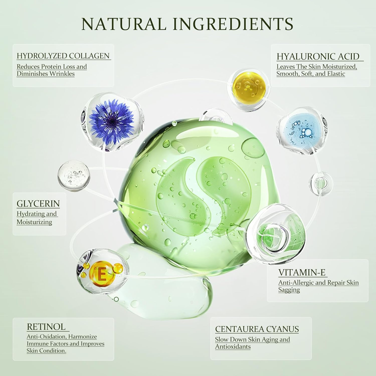 Under Eye Patches Masks - for Eye Bags with Collagen and Hyaluronic Acid, Dark Circles,and Fine Lines, Fade Wrinkles Treatment for Women and Men - 60 Pcs Green
