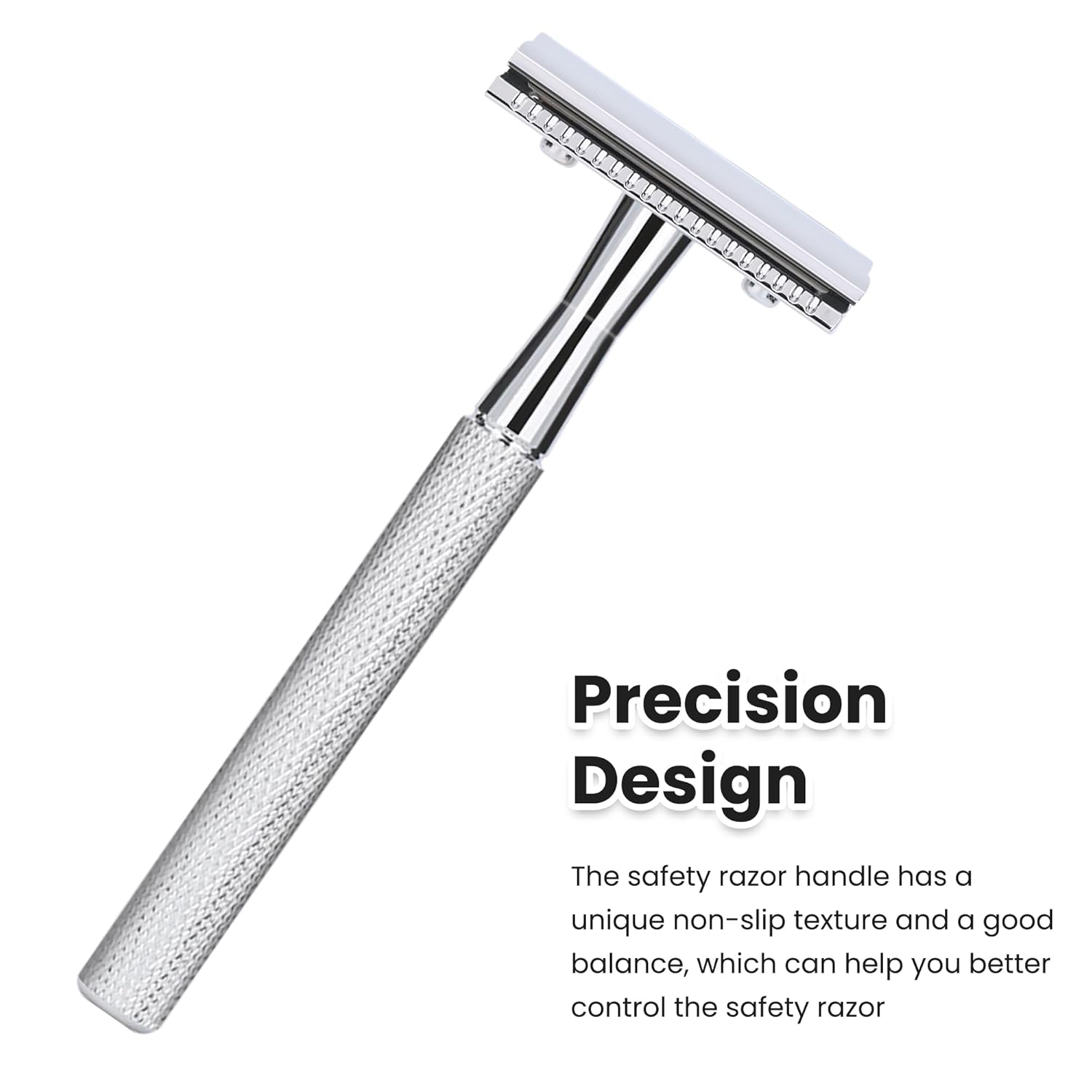 Double Edge Safety Razor With 10 Premium Stainless Steel Reusable Single Blade Razors For Men and Women, Smooth Wet Shave Experience, Glossy Silver
