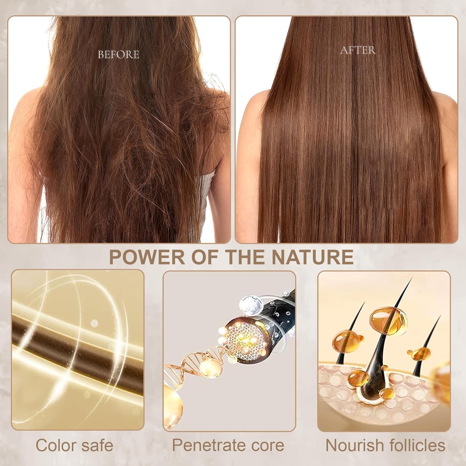 - 2️⃣ Strengthens & Repairs – Helps restore damaged strands, reducing breakage and split ends for healthier, more resilient hair.