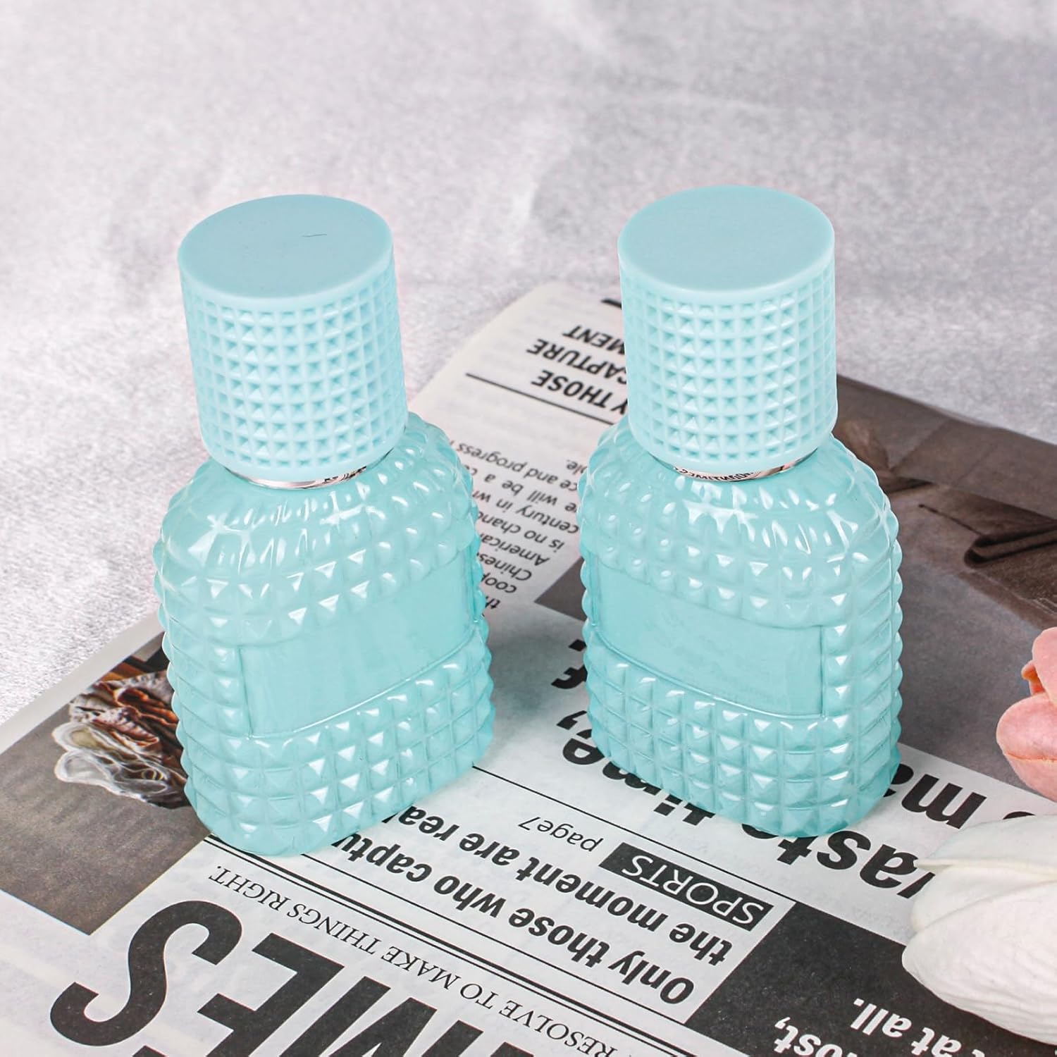 2 Pack 30ml Perfume Spray Bottles Empty, Refillable Glass Fine Mist Atomizer, Portable Travel Perfume Atomizers Fragrance Containers Sprayer for Cleaning, Essential Oils, Liquids (Blue)