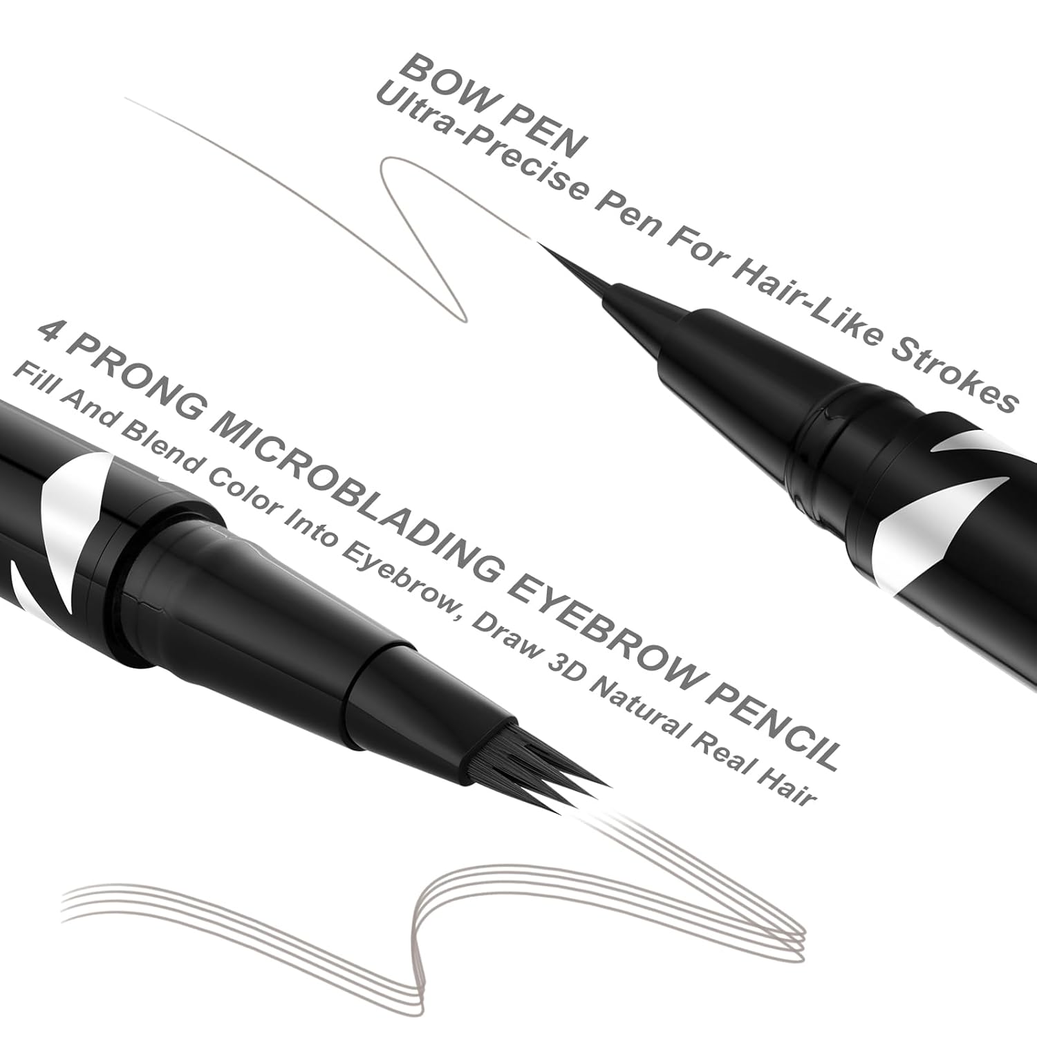 - 【Brow Pen】: LAVONE innovative 2-in-1 dual-ended eyebrow pen design with 4 tip microblading eyebrow pencil fill and blend color into eyebrows,draw 3D natural real hair, and ultra-precise pen makes realistic hair-like strokes & fill in sparse areas. It glides on easily and smooth to build natural looking, flawless, symmetrical and fuller brows with up to 24HR wear for brows. It’s long-lasting, smudge-proof, and waterproof.