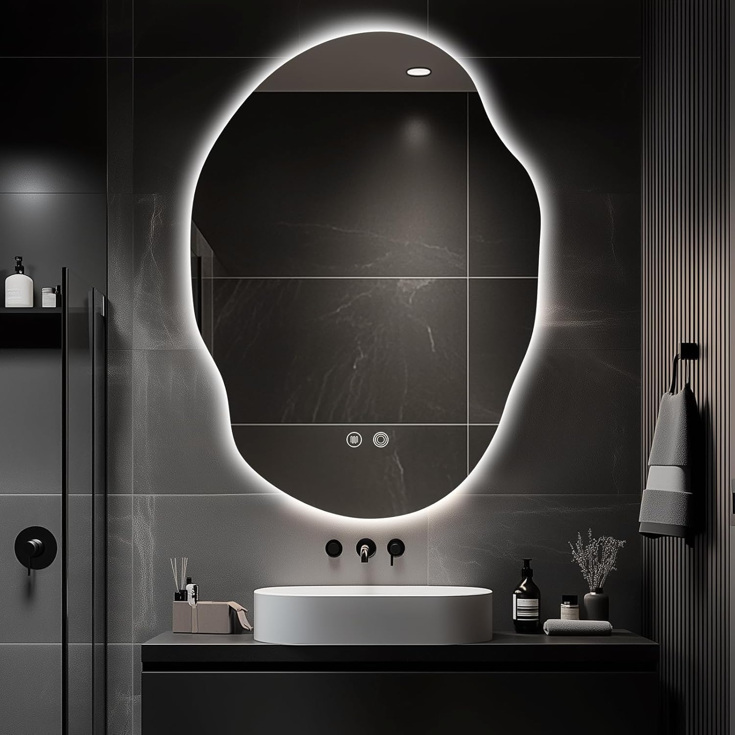 - Safety & Durability: The corrosion-resistant aluminum frame and IP54 waterproof rating make this asymmetrical LED bathroom mirror perfect for use in humid environments, especially over sinks.
