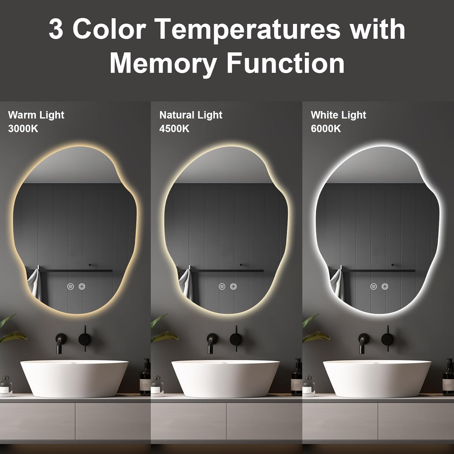 Irregular LED Bathroom Mirror with Lights,Asymmetrical Led Bathroom Vanity Mirror for Wall with Front and Backlit, Anti Fog, 3 Colors and Dimmable Light,[Horizontal/Vertical] 30" H x 22" W