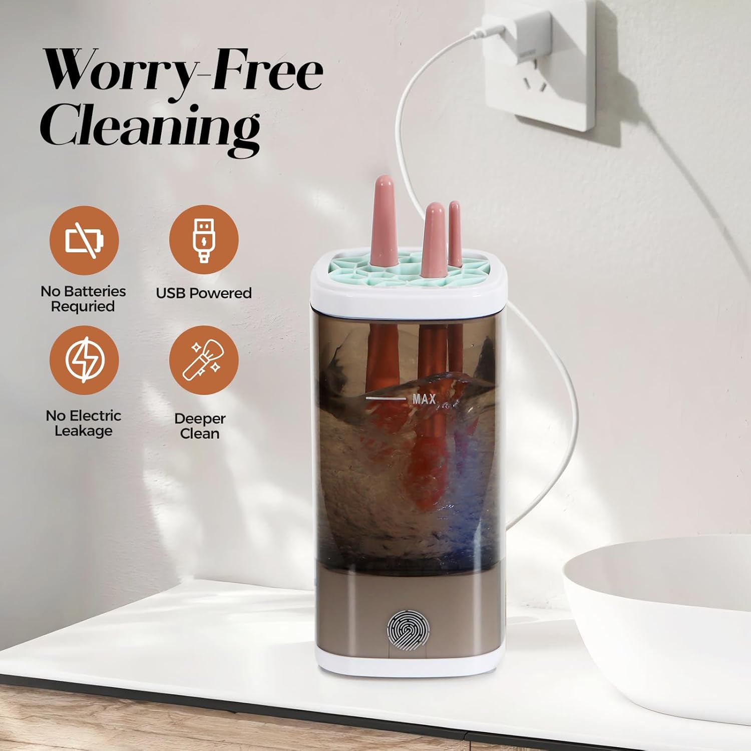 - Deep Cleaning with No Missed Spots: The powerful water flow and rotating brush head penetrate deep into the bristles, removing stubborn makeup residue and buildup, leaving your brushes cleaner and ready for use.