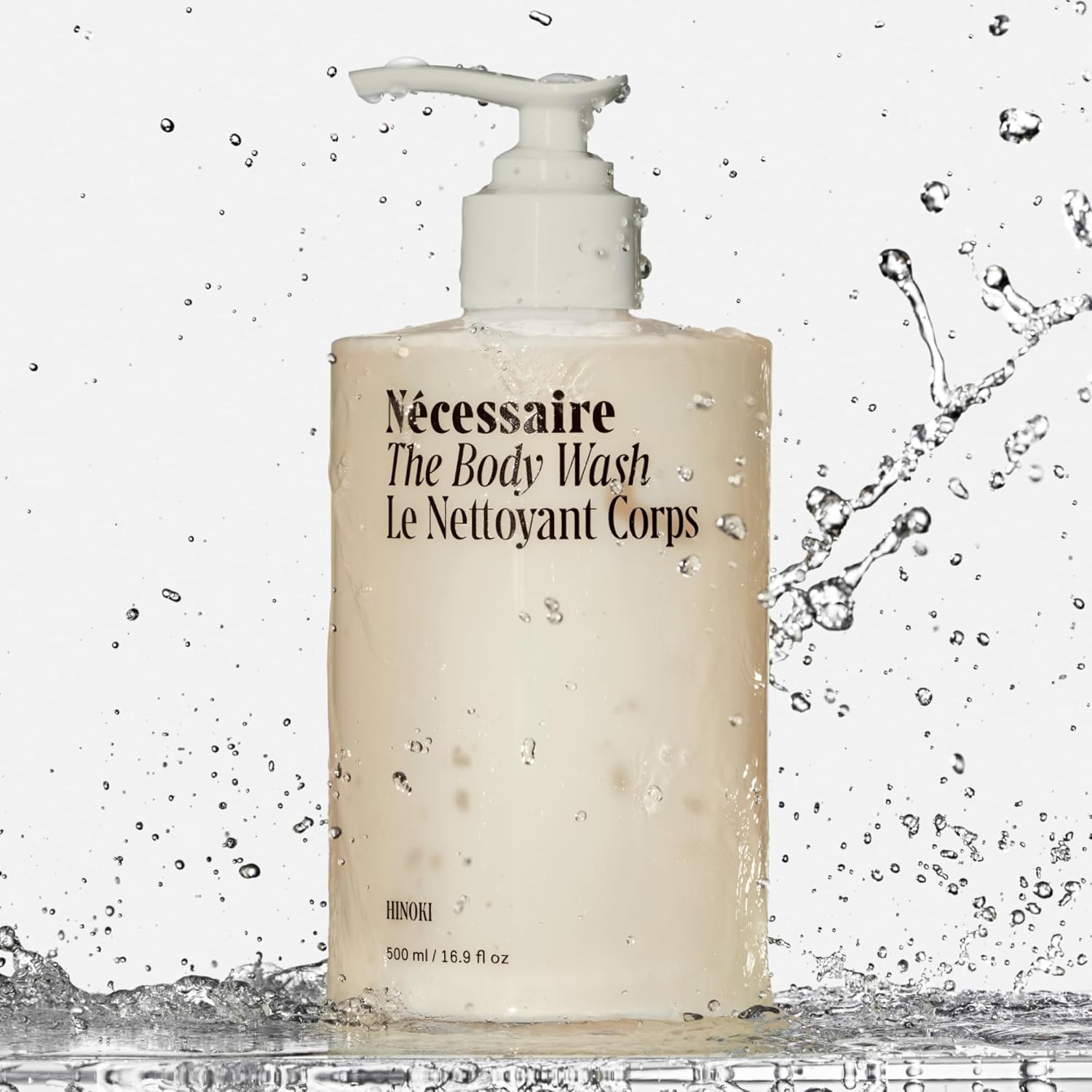 Nécessaire The Body Wash Hinoki. Natural Body Wash for Women & Men, Softening Shower Gel with Gentle Exfoliating Acids AHA/BHA/PHA. Gel Cleanse,16.9 fl oz