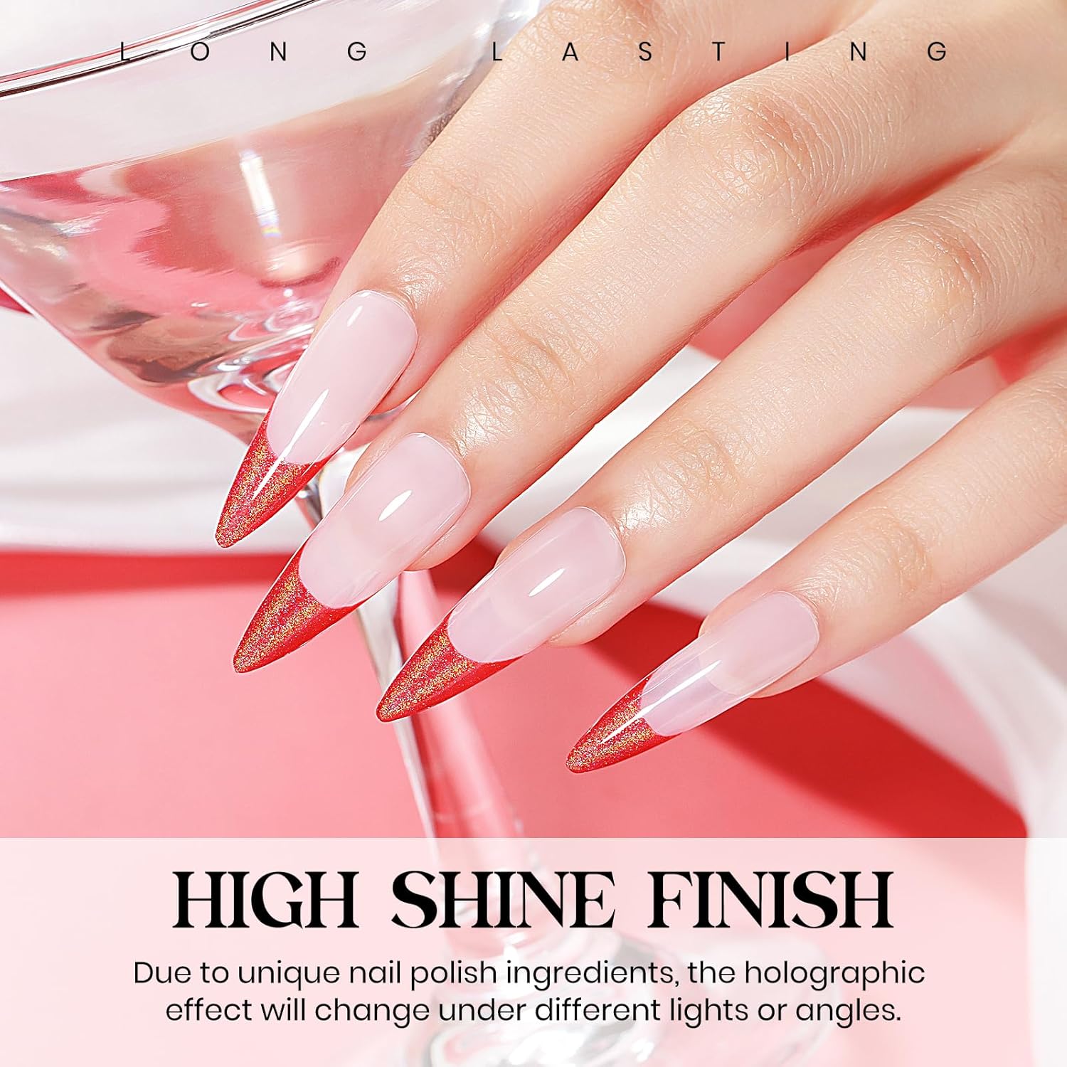 MIZHSE Holographic Nail Polish, Red Glitter Nail Polish Air Dry Fast, 15 ml 0.5 fl oz High Glossy Shiny Nail Pigment Oil-based Laser Iridescent Chrome Halo Nail Art Salon Manicure Home