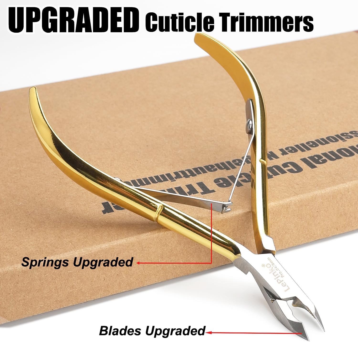 LePinko 4 Packs Upgraded Cuticle Trimmer kit, Sharp Dead Skin Clipper, Labor-Saving Cuticula Remover for Fingernail Toenail, Manicure Pedicure Tool for Women Men, 5mm Jaw, Golden