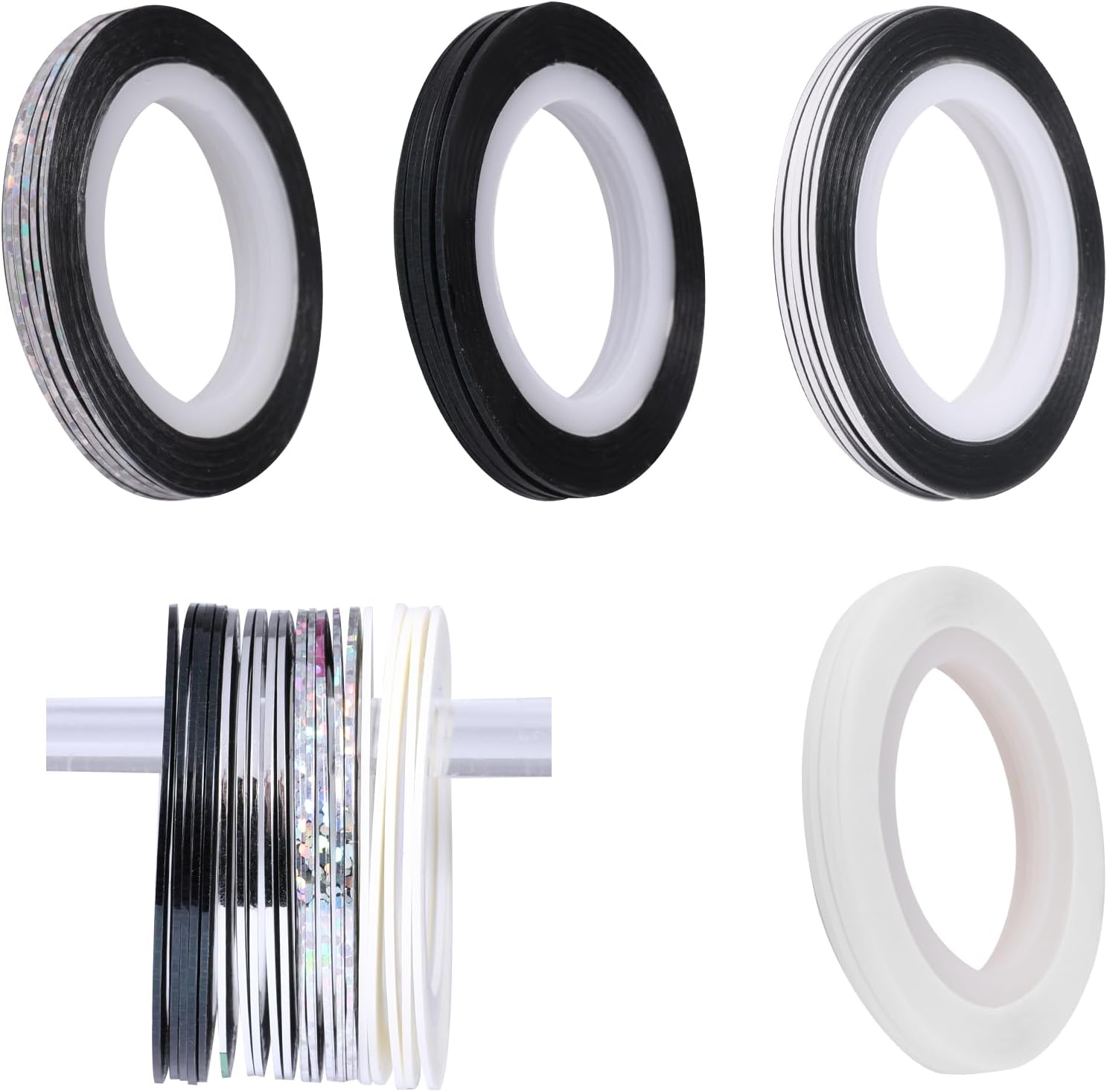 - CREATIVE NAIL ART: The art nail sticker set includes four colors: glitter black, glitter silver, black and white, you can freely use your creativity to create a unique nail art design style