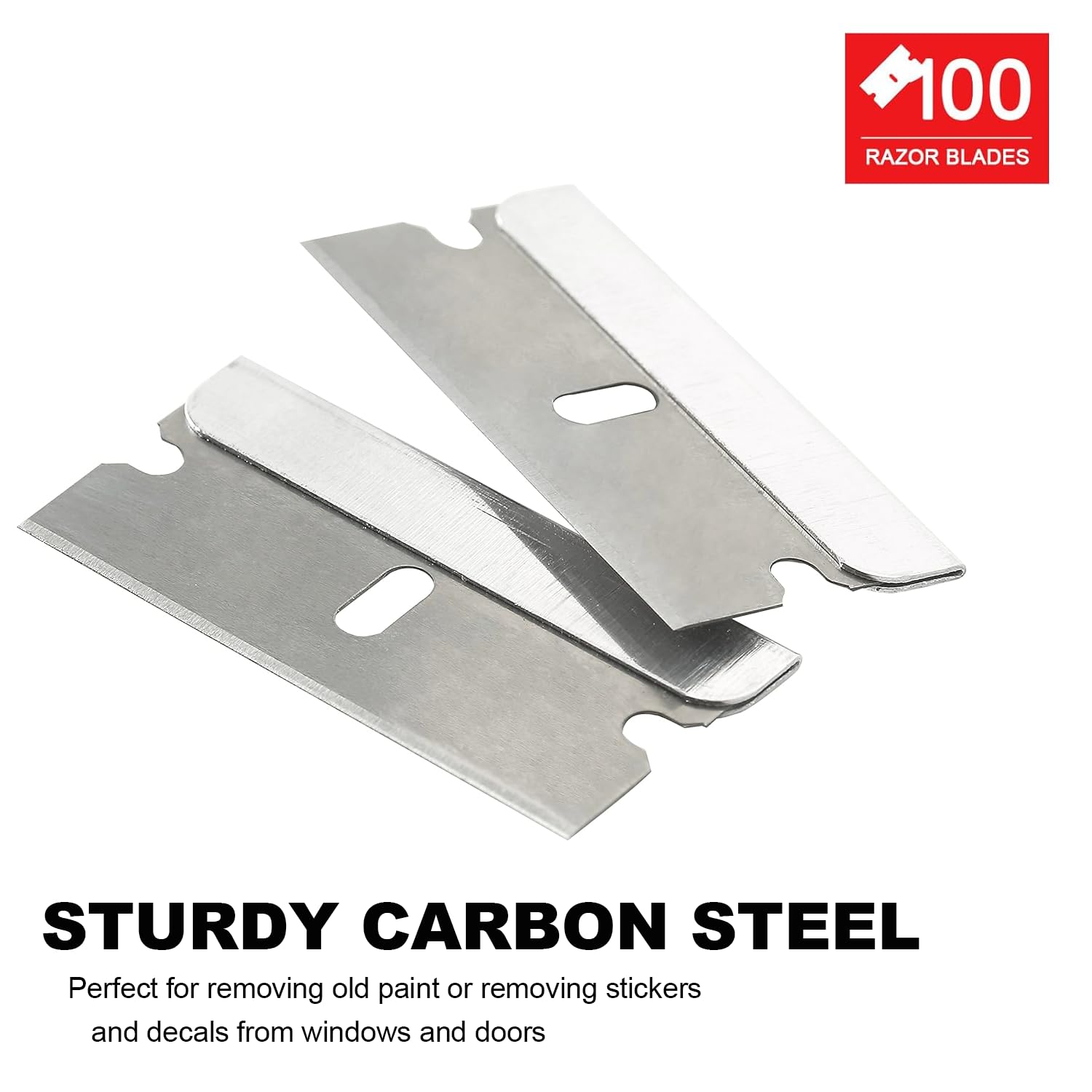 - 100 Pack single edge razor blades are made of high-quality carbon steel with hardness reaching HRC 58~64, our blades are sharper and durable in various cutting tasks.