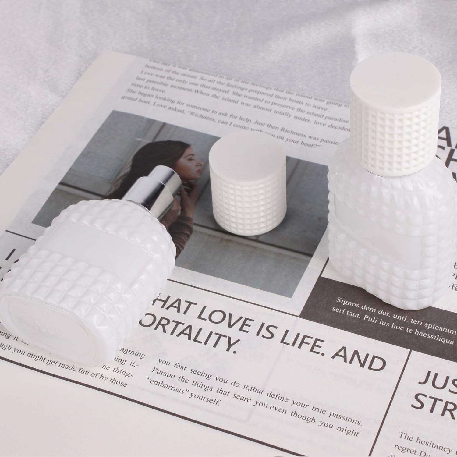 2 Pack 30ml Perfume Spray Bottles Empty, Refillable Glass Fine Mist Atomizer, Portable Travel Perfume Atomizers Fragrance Containers Sprayer for Cleaning, Essential Oils, Liquids (White)