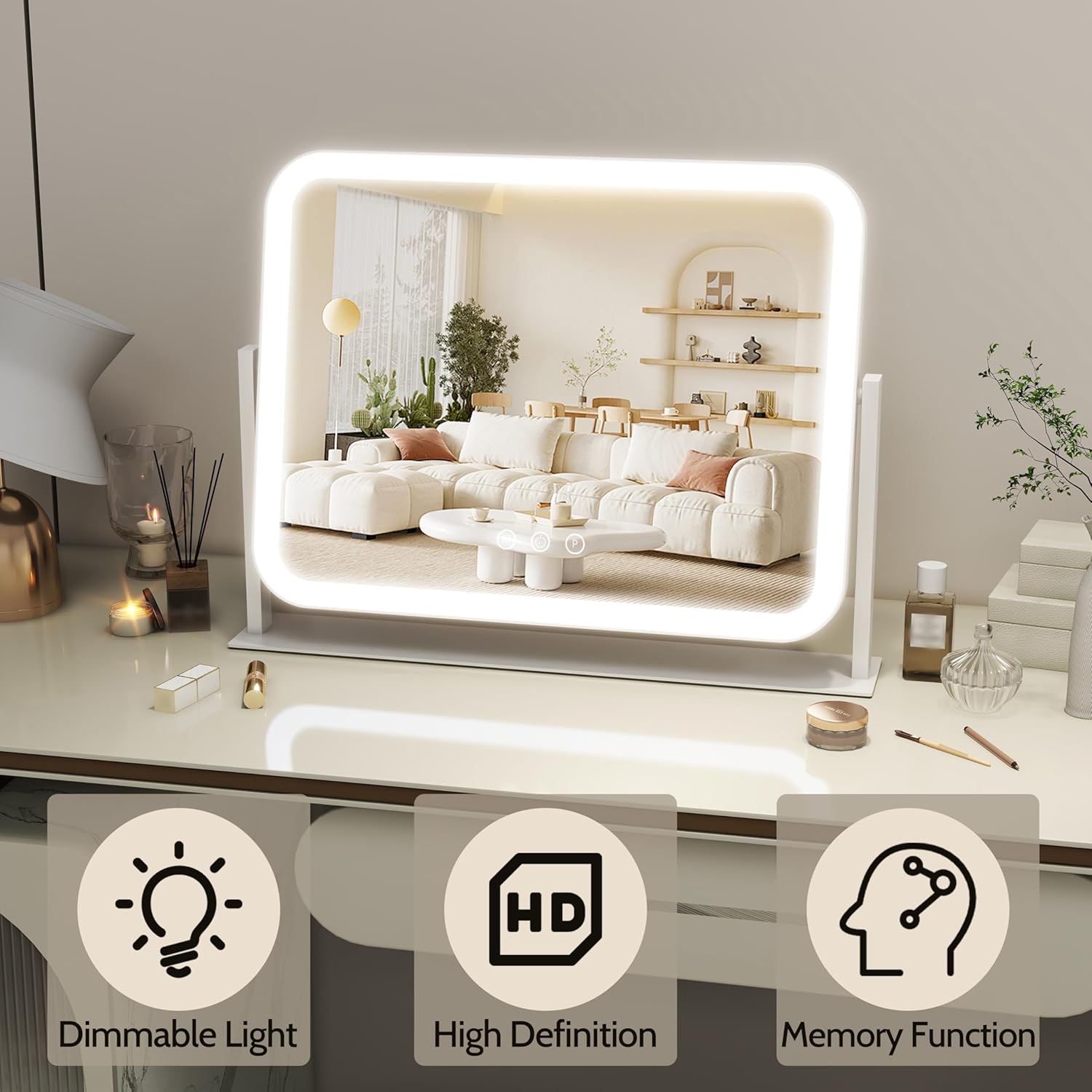 Lighted Makeup Mirror, 17"x13" Vanity Mirror with Lights and 10X Magnification, 3 Color Lighting Modes, Smart Touch Control, 360° Rotation for Bedroom or Tabletop (White)