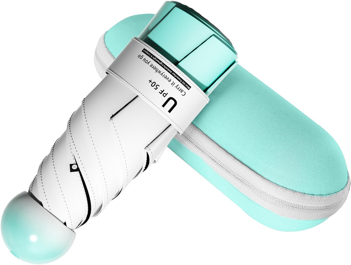 BAODINI Travel Mini Umbrella for Purse With Case Small Compact UV Sun Protection Sun Lightweight Tiny Pocket Umbrella for Women Kids and Men