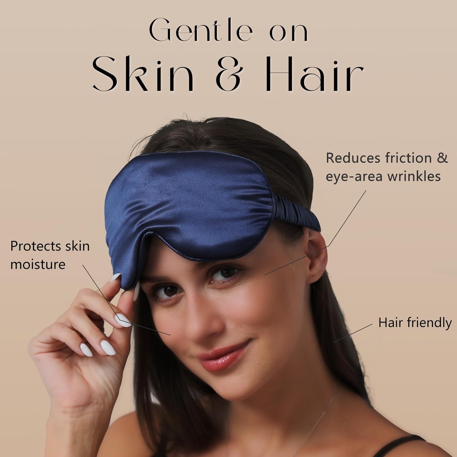 ZIMASILK Adjustable 22 Momme 100% Mulberry Silk Sleep Mask, Upgraded 3D Contoured Cup Eye Mask for Sleeping, Super Soft & Breathable Blindfold, Blackout for Deep Sleeping (Navy Blue)