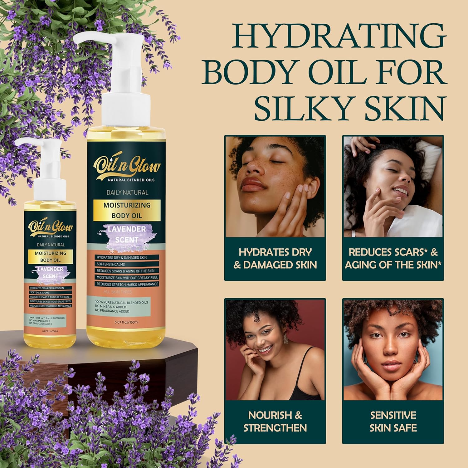 - QUICK ABSORBING AND NON-GREASY: Enjoy the lightweight feel of our non greasy body oil that absorbs quickly into the skin without clogging pores. This lavender body oil for dry skin is perfect for daily use, whether you need a refreshing body oil after shower or a calming massage experience. The natural blend of coconut hydrate body oil, jojoba oil for skin, and olive oil for skin ensures a silky, velvety texture, delivering hydration without the sticky feel.