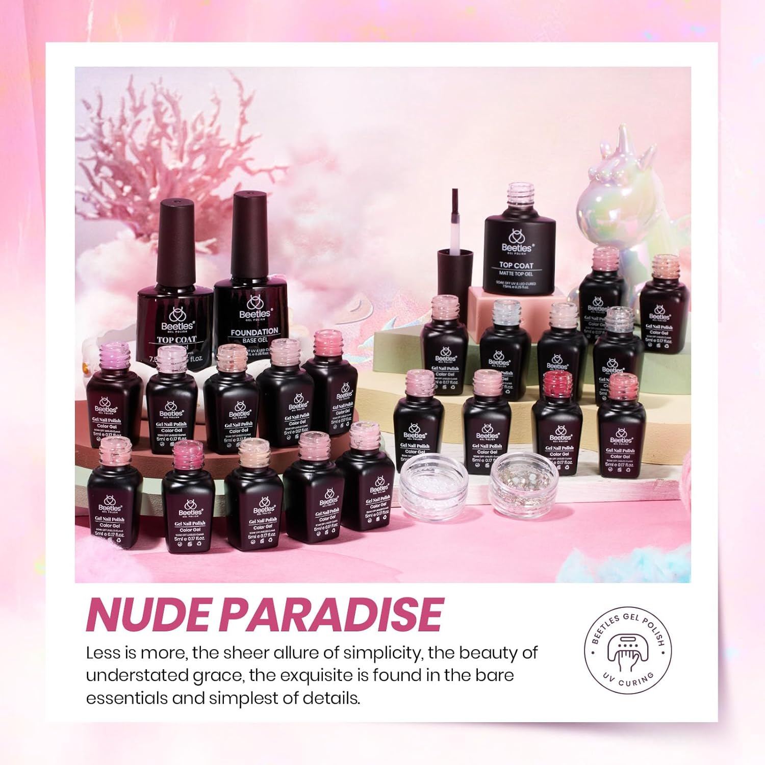 - ă28 Days Long LastingăBeetles sheer jelly nude pink milky white gel polish set lasts for 28+ days with high gloss shine under proper application. Strong, long-lasting, and flexible with excellent adhesion and flawless results without the need for professional help. Beetles always carefully selects the most matching color collection to help you easily find your favorite colors and confidently show fashionable outfits.