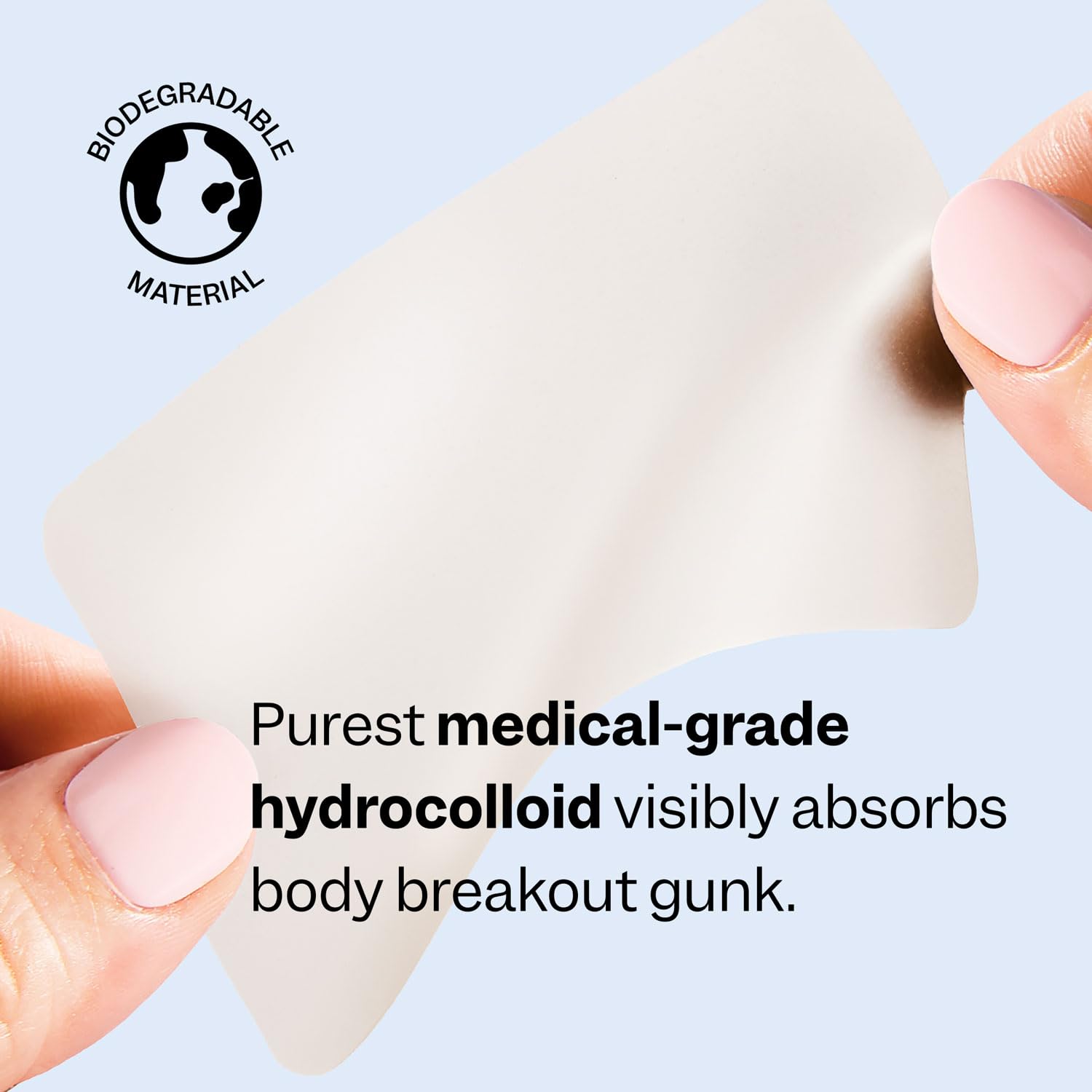 - Medical-grade hydrocolloid gently absorbs body breakout gunk, prevents picking, and creates a healing barrier