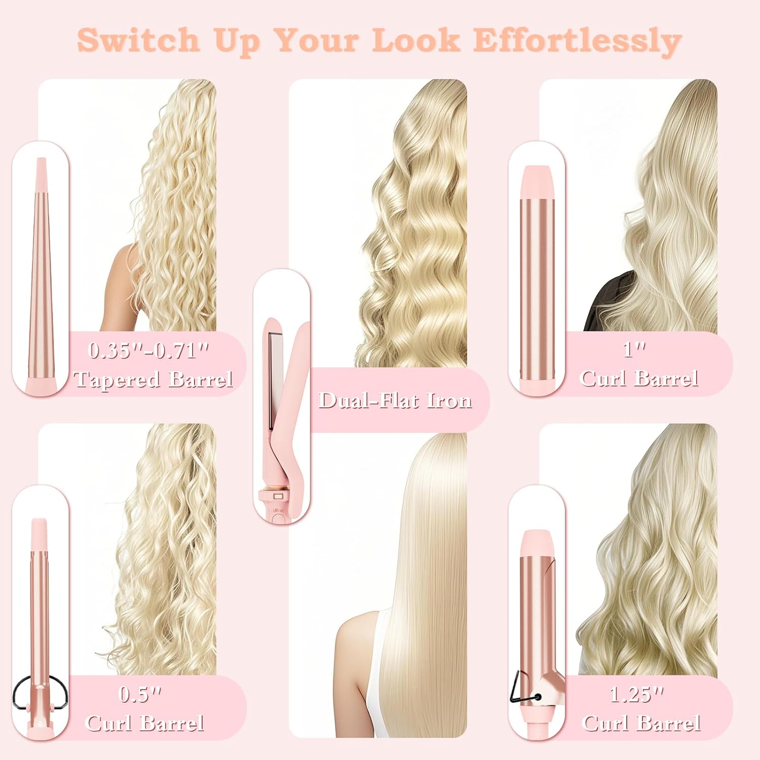 Ufree 5 in 1 Curling Iron with Ceramic Barrels (0.35"-1.25"), Curling Wand Set with Flat Iron Hair Straightener, Instant Heat Up, Dual Voltage Hair Curler, Gifts for Women, Pink