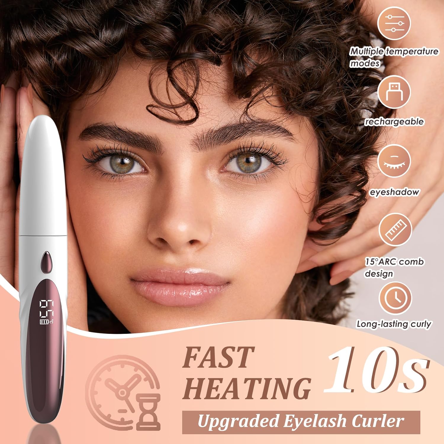 - 【Careful Design and Safety Protection】This electric eyelash curler is easy to operate. The 15°arc brush head fits your lashes better, temperature memeory function, can directly display the temperature set in the last use. The lash curler with 5 minutes no-operation auto-break, anti-misoperation, heat insulation protection comb.he thermal insulating protection slots can avoid heat contacting the eyelid.