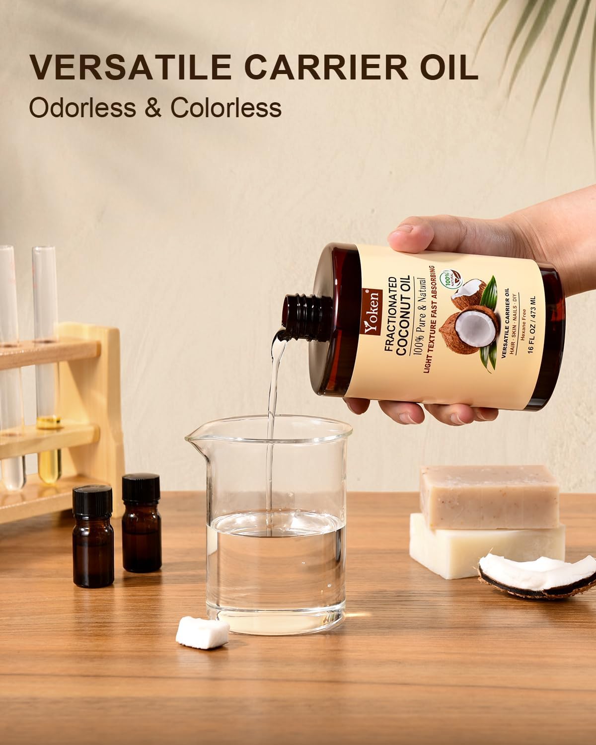 - Salon-Worthy Hair Hydration: Yoken Fractionated Coconut Oil Organic nourishes hair by taming frizz, protecting against damage, and enhancing softness and shine. You can directly apply it to damp hair or mixed with serums for an extra boost.