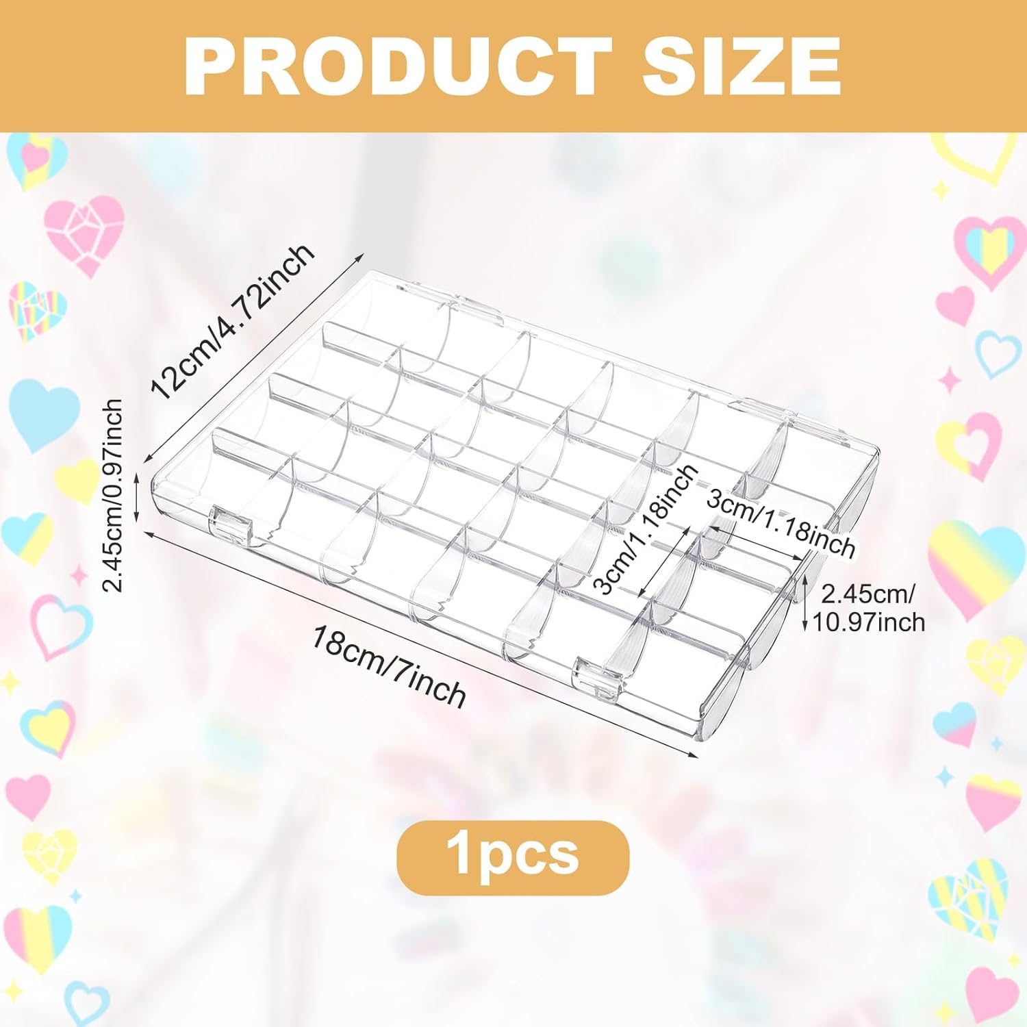 24 Grids Plastic Bead Organizer Box, Acrylic Jewelry Box Organizer Container Nail Rhinestone Display Case for Craft Beads Jewelry Small Parts Sewing Items (Clear)
