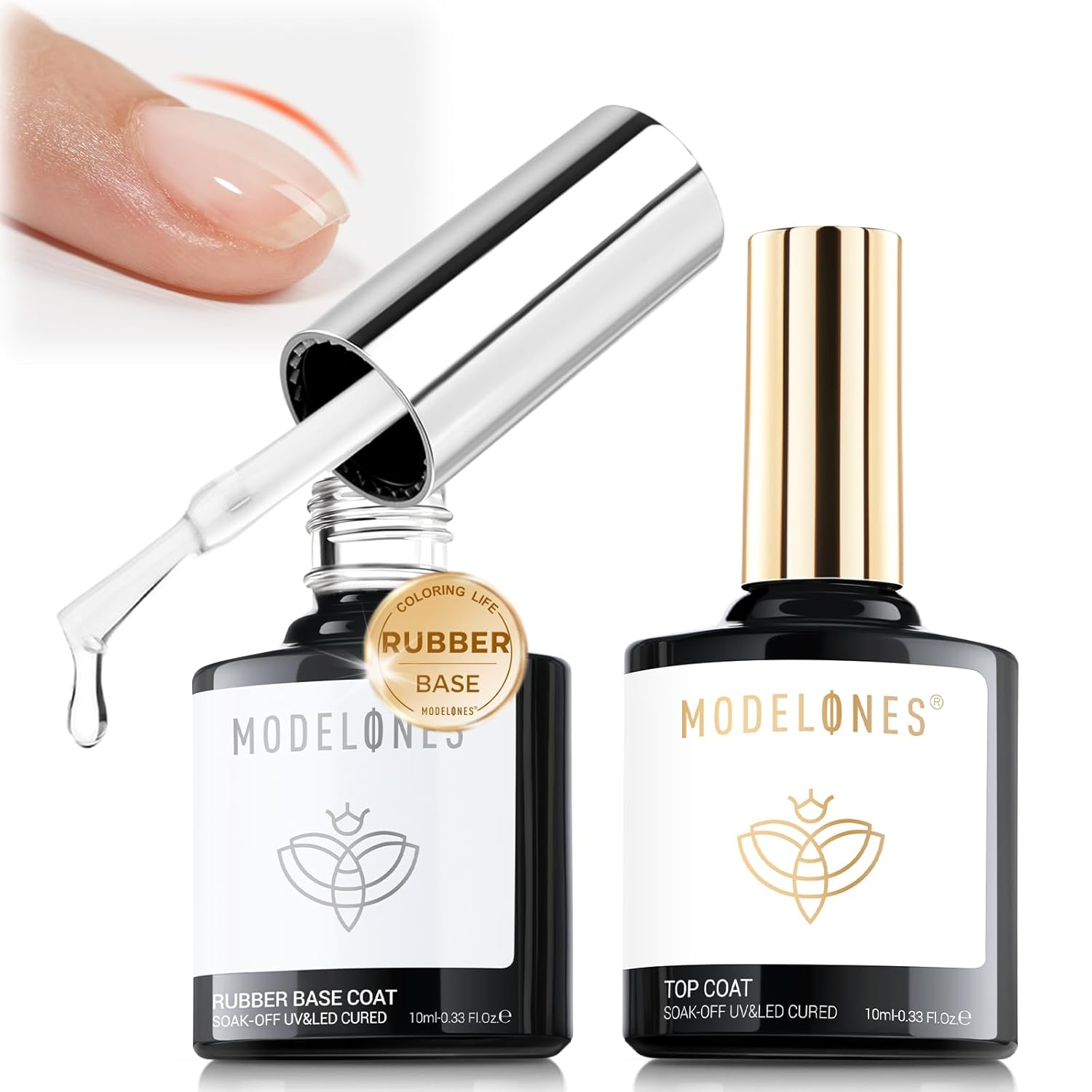 - Effortless Application: Modelones rubber builder gel and no wipe top coat features a high self-leveling formula and wide brush for smooth, bubble-free application that long-lasting luminary shine. Cures quickly under LED lamp. Perfect for beginners, manicurists, and DIY lovers